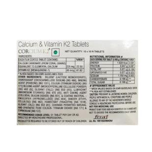 CORCIUM K2 (Elemental Calcium(225.0 Mg)+Vitamin K2 / Menadione(45.0 Mcg)+Curcuma Longa Extract(5.0 Mg))