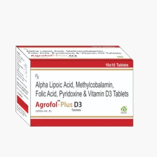 AGROFOL PLUS D3 (Alpha Lipoic Acid (100mg) + Methylcobalamin (1500mcg) + Folic Acid (1.5mg) + Pyridoxine (3mg) + Vitamin d3 (1000iu))