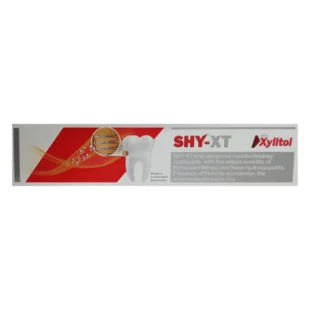 SHY XT (Sorbltol, Silica, Glycerin Potassium nitrate, Sodium Laury Sulphate, Nanohydroxyapatite, Xylitol, Titanium Dioxide, Sodium Saccharin, Sodium Methyl Hydroxy Benzoate, Methyl Salicylate, Disodium Hydrogen, Phosphate dihydrate, Disodium EDTA, 5 Sodium Propyl Hydroxy Benzoate)