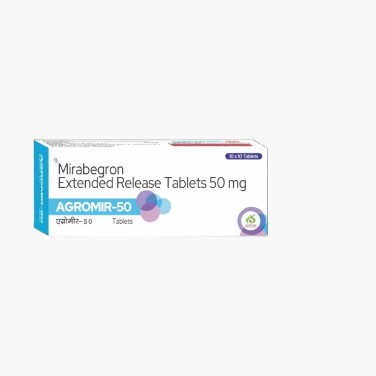 Agromir 50mg Tablet is indicated for the management of symptoms associated with overactive bladder, which may include frequent urination, a strong urgency to urinate, and difficulty in controlling urination. This medication works by relaxing the muscles surrounding the bladder, enhancing its ability to retain urine. It is important to follow the prescribed dosage and duration provided by your healthcare professional. The tablet can be consumed with or without food; however, it should be swallowed whole and not chewed or crushed. Discontinuation of this treatment should not occur without prior consultation with your healthcare provider, as this may exacerbate symptoms. Completing the entire course of treatment is crucial for maximizing the therapeutic effects of the medication. Patients may experience some side effects, which could include constipation, headaches, elevated blood pressure, nasal congestion, urinary tract infections, increased heart rate, and joint discomfort. If side effects become bothersome or persist, it is advisable to contact your healthcare provider promptly. Prior to starting treatment, inform your doctor about any other medications you are taking for different health issues. Additionally, if you are pregnant or nursing, discuss this with your doctor before beginning the treatment. Caution is advised for patients with liver or kidney conditions, and regular check-ups may be required as recommended by your healthcare professional.