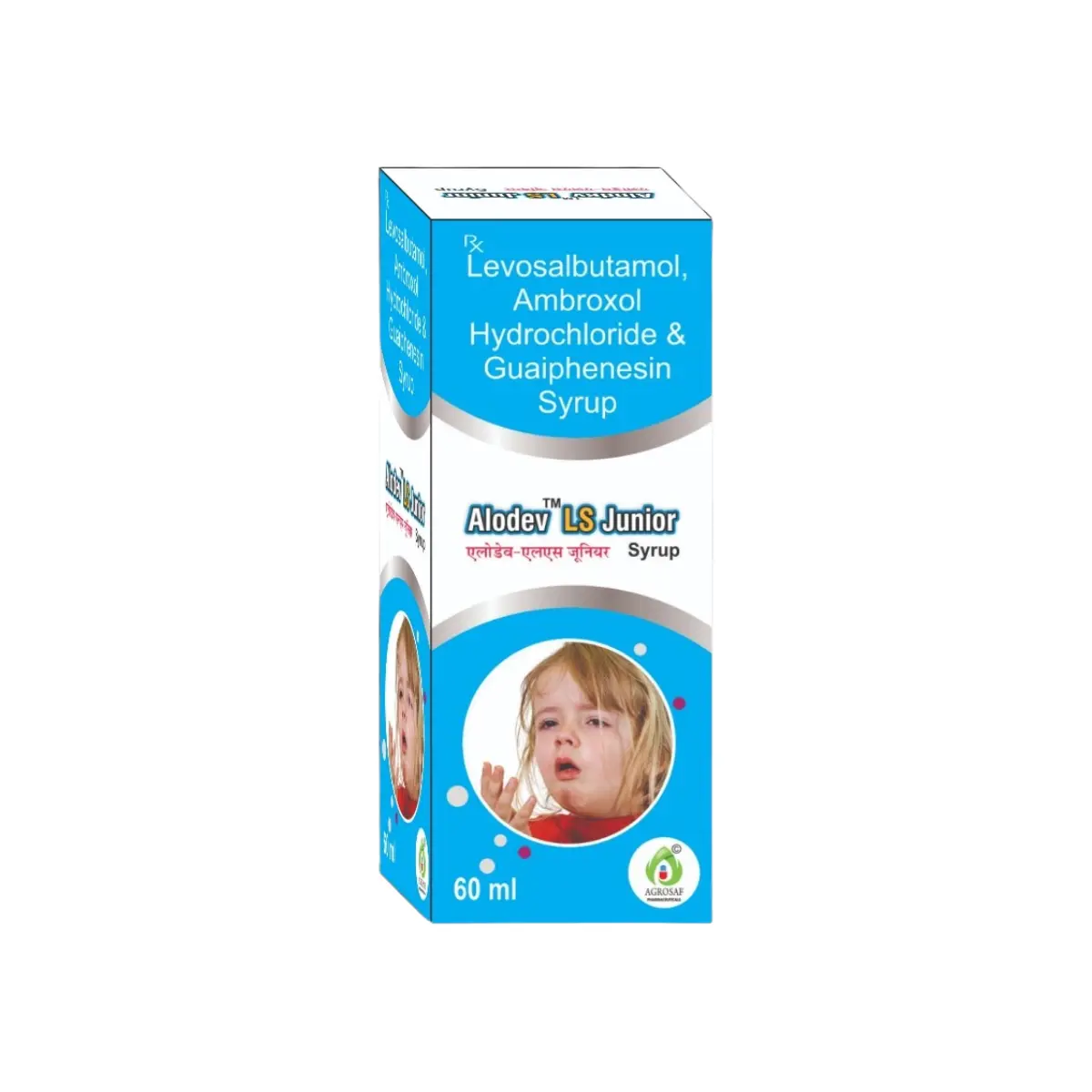 ALODEV LS JUNIOR SYRUP is specifically designed for pediatric patients struggling with respiratory issues. This syrup contains a combination of active ingredients: Levosalbutamol (0.5 mg), Ambroxol Hydrochloride (15 mg), and Guaifenesin (50 mg). The formulation is crafted to tackle multiple respiratory symptoms in children, providing a synergistic approach to treatment. Levosalbutamol functions as a bronchodilator, which helps to relax and widen the airways, facilitating easier breathing. Ambroxol plays a crucial role in mucus management by assisting in the breakdown of thick mucus, making it easier for children to expel it from their lungs. Guaifenesin further supports this process by thinning mucus, enhancing the clearance of phlegm from the respiratory tract. This combination is particularly beneficial for children who experience cough, bronchial obstruction, or breathing challenges. ALODEV LS JUNIOR SYRUP is an effective option for healthcare providers, including pharmacies and hospitals, looking for a trustworthy treatment for young patients with respiratory conditions. The product is available for wholesale orders and can be utilized for third-party manufacturing, ensuring a steady supply for those in need of pediatric respiratory solutions. Use this medicine only under medical supervision. Follow the dose and schedule exactly as advised. Do not stop abruptly without guidance. Keep a record of any unusual symptoms and share them with your clinician. Combine therapy with appropriate lifestyle measures and routine monitoring as recommended.