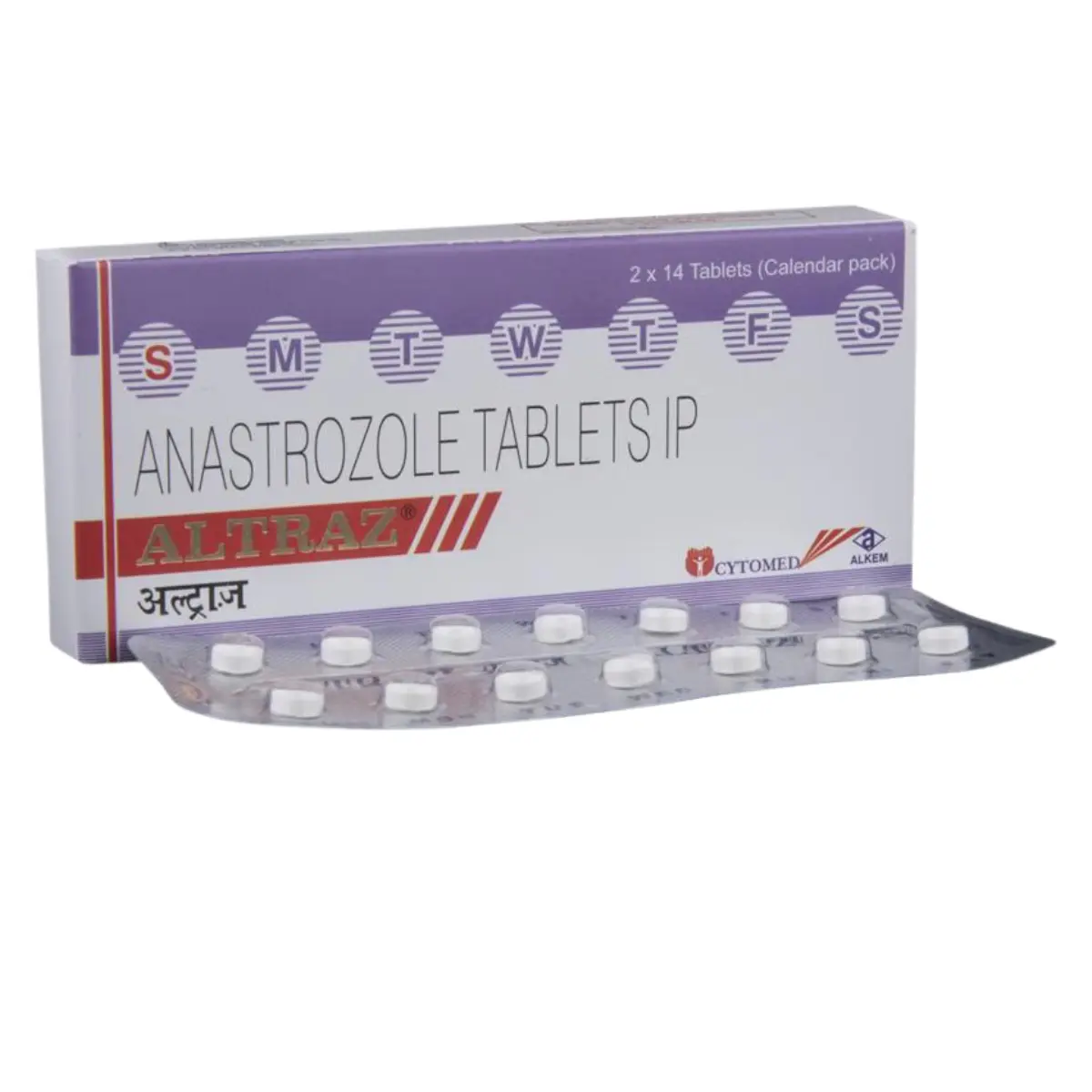 Altraz Tablet contains Anastrozole as its active ingredient and is commonly used in the management of certain types of breast cancer in women. It plays a role in supporting patients by helping to lower estrogen levels in the body, which can be beneficial in slowing or stopping the growth of specific cancer cells that rely on estrogen for development.