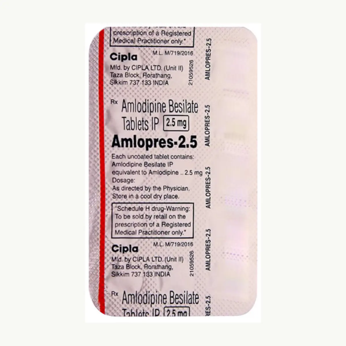AMLOPRES 2.5 MG is a medication that is commonly prescribed to assist in the treatment of hypertension, which is characterized by elevated blood pressure levels, and to help prevent angina, which is chest pain resulting from reduced blood flow to the heart. The active ingredient in AMLOPRES is Amlodipine, which is classified as a calcium channel blocker. This specific type of medication works by relaxing smooth muscle cells in the blood vessel walls, which leads to dilation and a decrease in vascular resistance. Consequently, this effect results in improved circulation and lowers the workload of the heart, effectively decreasing blood pressure levels. For those suffering from angina, Amlodipine can enhance the delivery of oxygen-rich blood to the heart by widening the coronary arteries, thus reducing the frequency and intensity of angina episodes. The benefits of AMLOPRES include effective management of blood pressure, prevention of angina-related chest pain, a gentler initial dosage suitable for sensitive individuals, and the convenience of once-daily administration, promoting adherence to treatment. Patients are advised to take AMLOPRES consistently at the same time each day, and to follow their healthcare provider’s instructions regarding dosage. It is essential to continue taking the medication even if one feels better, as discontinuation can lead to a significant increase in blood pressure and potential cardiovascular risks.