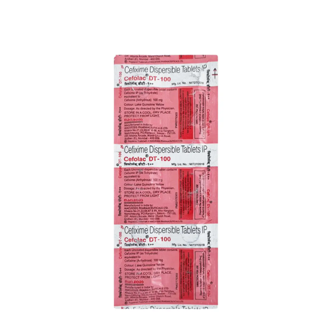 Cefolac DT-100 Tablet is a prescribed antibiotic effective in treating a range of bacterial infections. It is particularly useful for conditions affecting the respiratory system, such as pneumonia, as well as infections of the urinary tract, ears, nasal sinuses, throat, and certain sexually transmitted infections. It is important to use Cefolac DT-100 Tablet only under the guidance of a healthcare professional. Patients are advised to adhere strictly to the prescribed dosage schedule and take the medication consistently at the same times each day for optimal effectiveness. The appropriate dosage will vary based on the specific infection being treated, but it is crucial to complete the entire course of treatment as directed by a physician, even if symptoms improve before finishing the medication. Ceasing the antibiotic prematurely can result in the survival of some bacteria, which may lead to a recurrence or exacerbation of the infection. This antibiotic is ineffective against viral infections such as the flu or the common cold. Misuse of antibiotics can contribute to decreased effectiveness in managing future infections. Patients must inform their healthcare provider about any known allergies to antibiotics, as well as any existing kidney or liver issues. Additionally, it is essential to disclose any other medications currently being taken, as they may interact with Cefolac DT-100. Generally, this medication is considered safe for use during pregnancy and while breastfeeding, provided it is prescribed by a qualified medical professional.