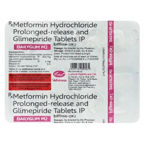 Dailyglim M2 Tablet PR is categorized within the anti-diabetic medication class and is specifically formulated to assist adults diagnosed with type 2 diabetes mellitus. This formulation combines two active ingredients aimed at effectively managing and stabilizing blood glucose levels in individuals experiencing diabetes. It is crucial to administer this medication alongside meals to optimize its efficacy. For consistent results, it is advised to take the tablet at the same time each day. Your healthcare provider will determine the appropriate dosage tailored to your needs, and adjustments may be necessary based on how well your blood sugar levels are being managed over time. Continuation of this treatment is essential, even if you feel healthy or your blood glucose appears to be well-regulated. Discontinuing the medication without medical counsel could lead to an elevation in blood sugar levels, potentially heightening the risk of severe complications such as kidney impairment, vision loss, nerve damage, and even the risk of amputation. It’s important to recognize that this medication should be part of a comprehensive treatment strategy that includes a nutritious diet, consistent physical activity, and weight management as guided by your healthcare provider. Personal lifestyle choices are integral to effective diabetes management. One of the most frequently reported adverse effects associated with Dailyglim M2 Tablet PR is a reduction in blood glucose levels (hypoglycemia). Awareness of hypoglycemia symptoms—such as excessive sweating, dizziness, headaches, and tremors—is essential, as is having quick-access sources of glucose like sugary snacks or fruit juices on hand. Alcohol consumption is discouraged as it may exacerbate the risk of low blood sugar. Additional possible side effects include alterations in taste, feelings of nausea, gastrointestinal discomfort, headaches, and infections in the upper respiratory tract. Some individuals may experience weight gain as a result of this medication. It is not advised for individuals with type 1 diabetes, diabetic ketoacidosis, or severe kidney or liver conditions. Prior to starting this medication, patients should disclose any history of heart disease to their doctor. Pregnant and breastfeeding women must also seek medical advice before commencing treatment. Regular monitoring of blood glucose levels and possible blood tests to evaluate blood cell counts and liver health are recommended while using this medication.