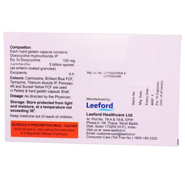 DOXYNEC combines doxycycline and lactobacillus to support individuals dealing with bacterial infections while also promoting gut health. Doxycycline is an antibiotic that helps to combat various types of bacteria in the body, addressing infections effectively. Lactobacillus, a beneficial bacterium, helps maintain a healthy balance of gut flora, which can be especially important during antibiotic treatment, as it may affect the natural bacteria in your digestive system.