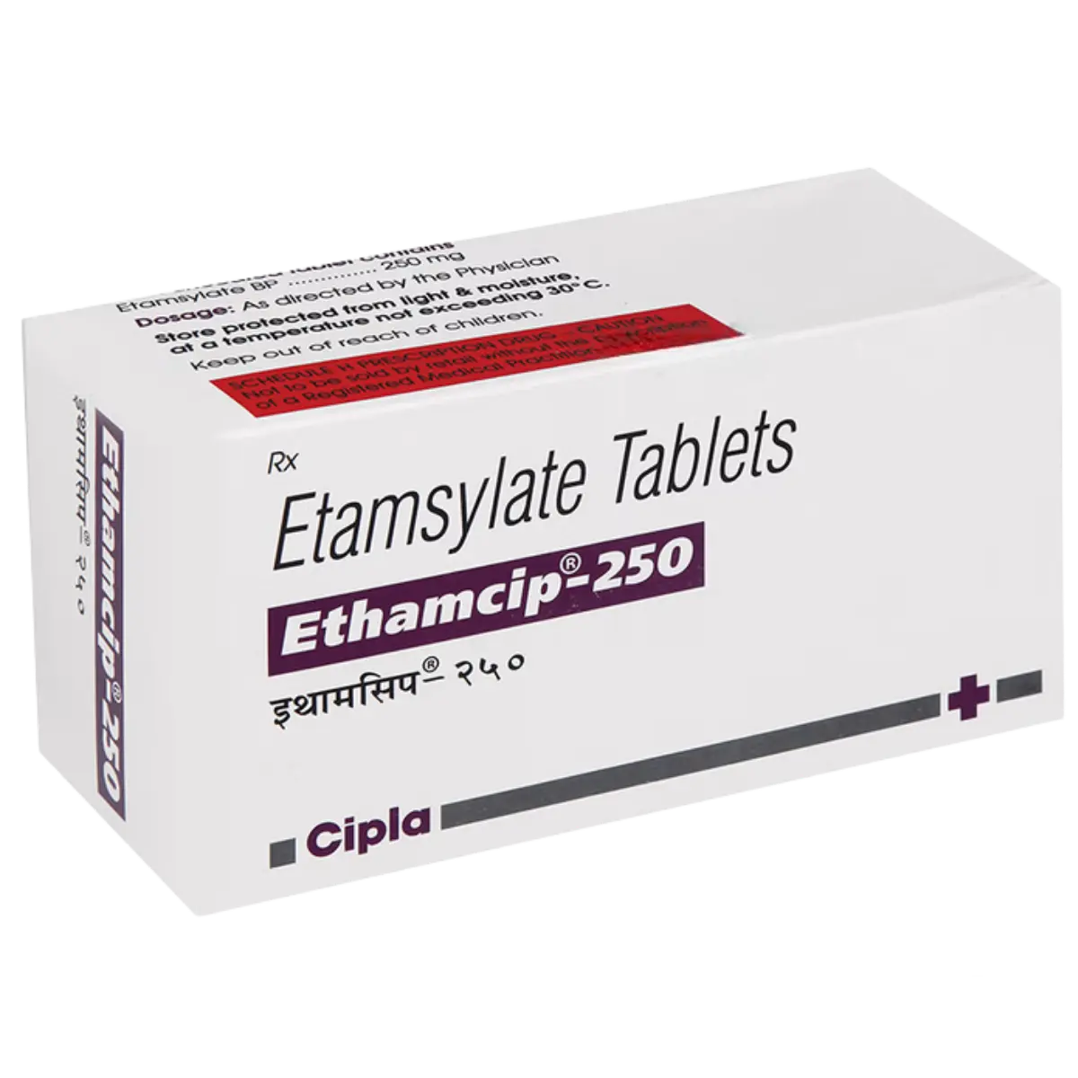 Ethamcip 250mg Tablet is indicated for the management of bleeding issues. It serves to either prevent or diminish bleeding associated with conditions such as excessive menstrual blood loss and dysfunctional uterine bleeding. Additionally, it plays a role in minimizing bleeding during, prior to, or following surgical procedures that are considered delicate. This medication functions as a hemostatic agent, enhancing the likelihood that platelets will adhere to one another, which is essential for effective blood clot formation. Furthermore, it aids in controlling bleeding that originates from capillaries, which are the smallest blood vessels in the body. For optimal results, it is imperative to take this medication precisely as directed by your healthcare provider, in terms of dosage and duration of use. Should any of the common adverse reactions occur, such as nausea, headaches, diarrhea, vomiting, or skin rashes, it is important to notify your healthcare provider. They may have recommendations to alleviate these effects. It is crucial to inform your doctor about any existing conditions related to your liver, heart, or kidneys prior to starting this medication, and you should avoid using it if you have known hypersensitivities to its components. Use this medicine only under medical supervision. Follow the dose and schedule exactly as advised. Do not stop abruptly without guidance. Keep a record of any unusual symptoms and share them with your clinician. Combine therapy with appropriate lifestyle measures and routine monitoring as recommended.