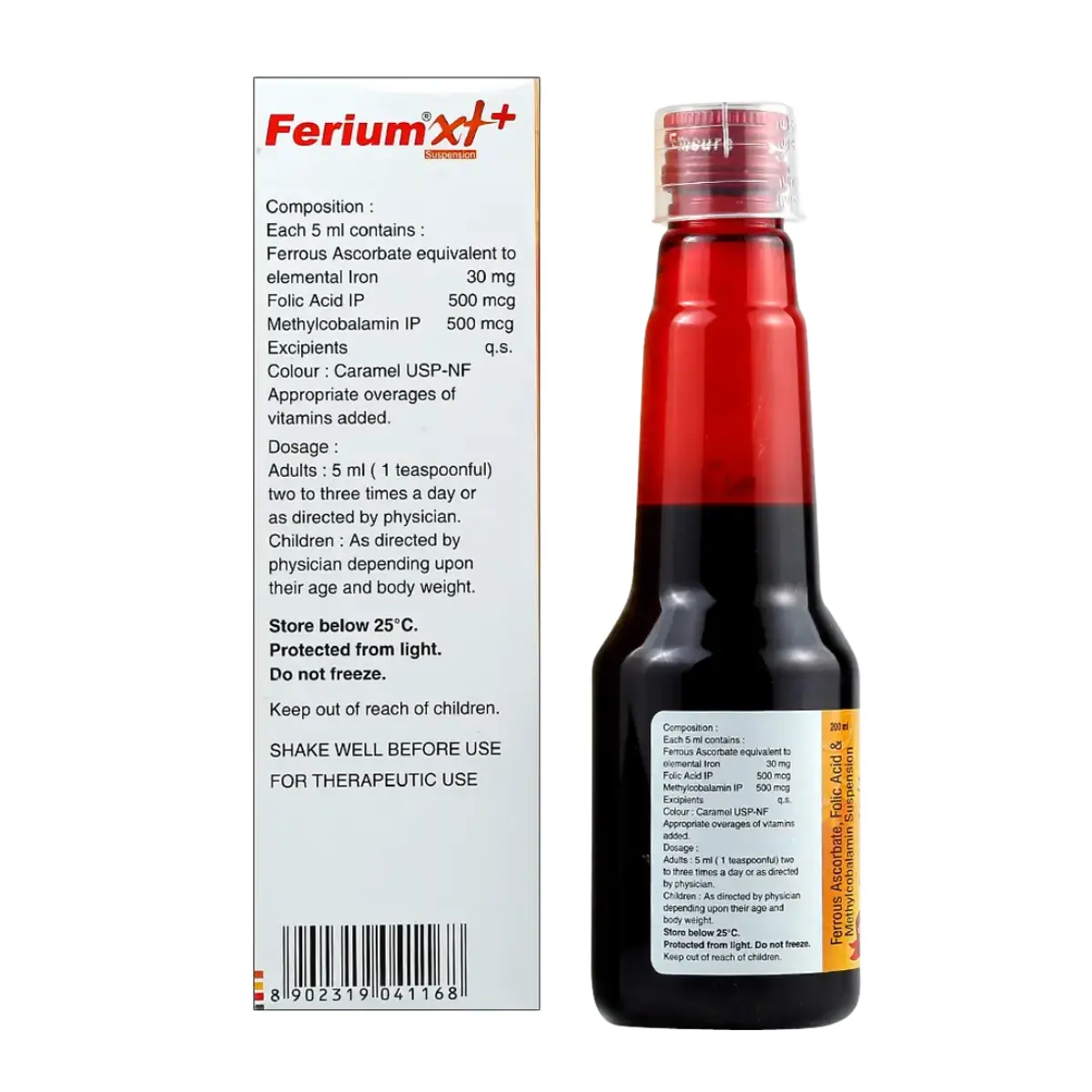 Ferium XT+ Suspension is formulated to support cellular development and upkeep. This formulation is beneficial for executing regular bodily operations, addressing nutritional gaps within the body, and safeguarding cells from damage and deterioration. It contains a blend of essential nutrients that contribute to overall health by promoting the effective functioning of various bodily systems. This supplement plays a critical role in maintaining energy levels, supporting immune function, and enhancing the body’s ability to recover from physical stress. Regular use of this suspension may assist in improving vitality and ensuring that the body has the necessary components to withstand everyday challenges. It is especially important for individuals who may have dietary deficiencies or increased nutritional needs due to lifestyle, illness, or age. The product is designed to be easily absorbed, ensuring that the nutrients are readily available to the cells for optimal utilization. In addition, it may aid in the overall well-being, promoting better health outcomes when taken as directed. It is advised to follow the recommended dosage and consult a healthcare professional if there are any questions about its use or if underlying health conditions exist. Use this medicine only under medical supervision. Follow the dose and schedule exactly as advised. Do not stop abruptly without guidance. Keep a record of any unusual symptoms and share them with your clinician. Combine therapy with appropriate lifestyle measures and routine monitoring as recommended.