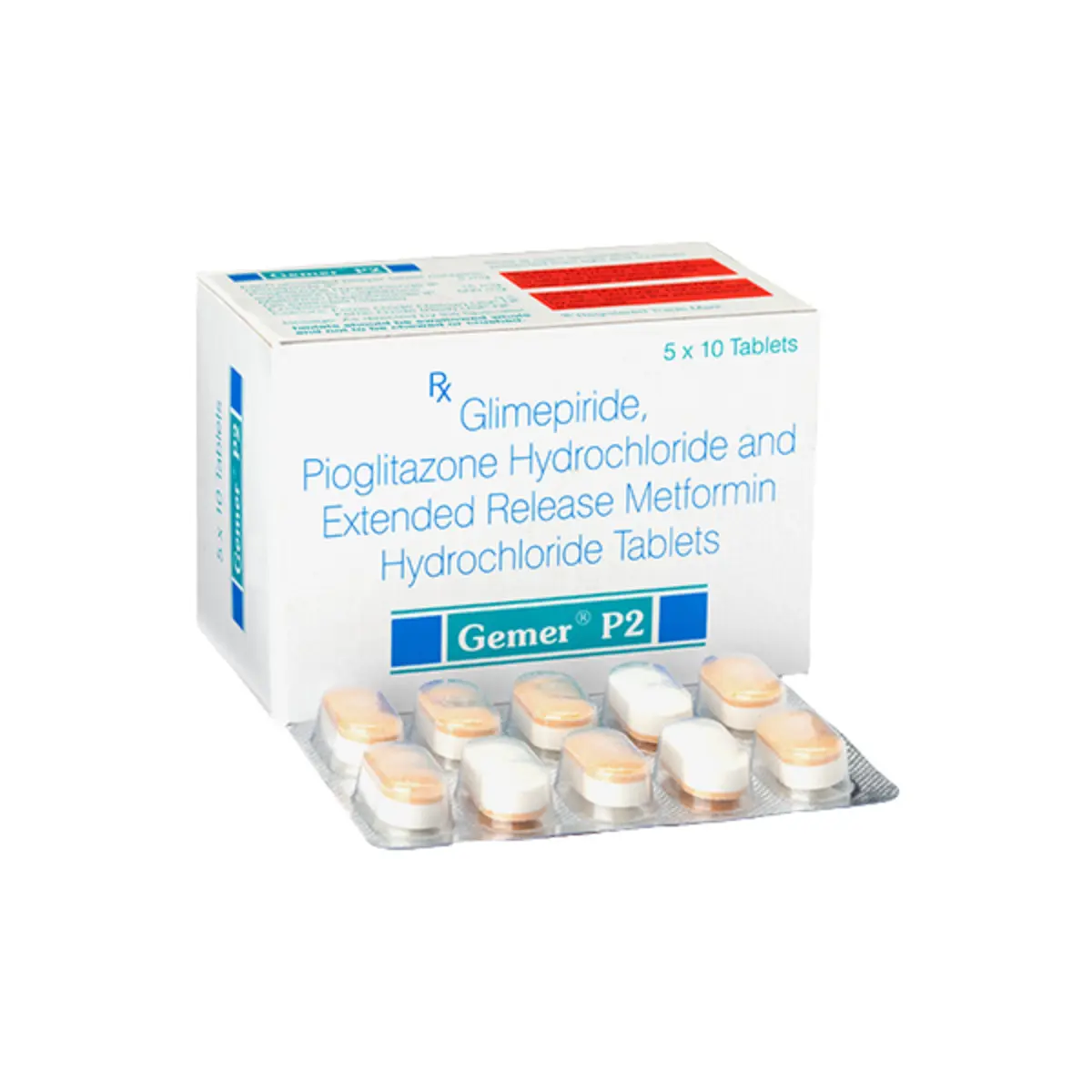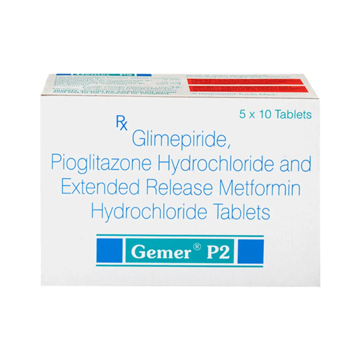 GEMER P2 TAB is a medication commonly used for managing blood sugar levels in adults with type 2 diabetes. By combining three active ingredients, it helps support individuals in maintaining a stable glucose level, which is essential for overall health and well-being. This medication can be an important part of a comprehensive diabetes management plan, often alongside diet and exercise.