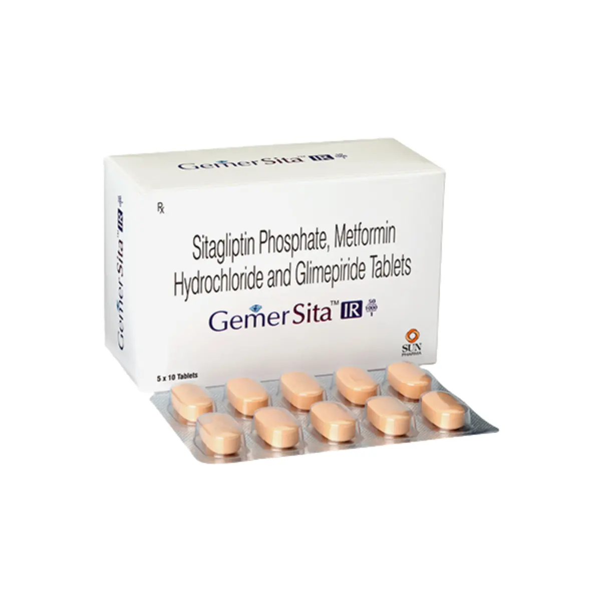 Gemer Sita IR 50/1000/1 Tablet is a formulation that combines three distinct medications designed to help manage blood sugar levels in individuals diagnosed with type 2 diabetes mellitus. This treatment is typically recommended when lifestyle changes such as diet and exercise, alongside other medications, do not sufficiently control blood glucose levels. For optimal effectiveness, it is advisable to administer this medication with food and ensure a consistent routine by taking it at the same time each day. The appropriate dosage and duration of treatment will be determined by a healthcare professional based on the patient’s specific health condition and response to the therapy. Regular monitoring of blood glucose levels may be conducted by the physician during the treatment period. It is imperative to continue taking this medication even if you feel well or experience stable blood sugar levels, as sudden cessation can lead to an increase in blood glucose and potential complications. Gemer Sita IR 50/1000/1 Tablet is intended to be part of a comprehensive diabetes management plan that includes dietary management, physical activity, and weight management, reflecting the importance of healthy lifestyle choices in diabetes control. Individuals should consult their healthcare provider regarding any side effects that are bothersome or persistent, as adjustments or alternative treatments may be necessary.