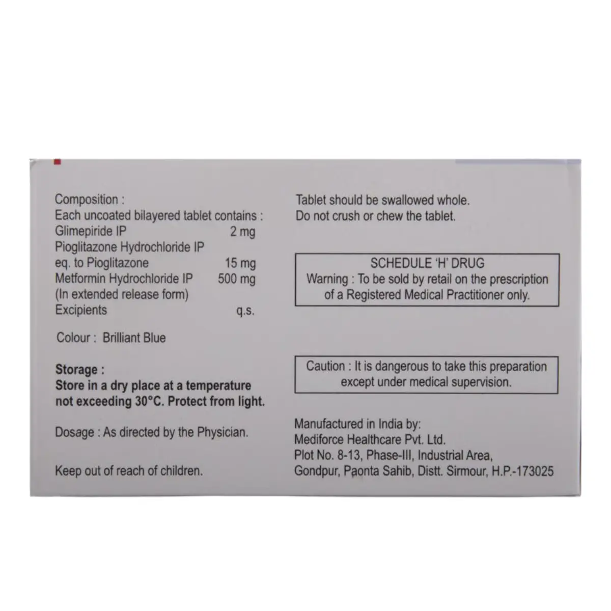 Glimestar-PM2 is an extended-release tablet designed to assist in regulating blood glucose levels in individuals diagnosed with type 2 diabetes mellitus. This medication is intended to be used in conjunction with a balanced diet and regular physical activity to enhance glycemic control. By facilitating the effective use of insulin, Glimestar-PM2 helps to lower blood sugar levels, thereby contributing to better overall health management for those affected by this condition. It is crucial to adhere strictly to the dosage and duration recommended by your healthcare provider. To mitigate potential stomach discomfort, it is advised to consume this medication with food. In instances where a dose is missed, it should be taken as soon as you remember. However, if the time for the next scheduled dose is near, it is advisable to skip the missed dose without doubling up. Overdosing on this medication can result in hypoglycemia, a condition characterized by abnormally low blood sugar levels. Individuals taking Glimestar-PM2 alongside other antidiabetic medications, alcohol, or who miss meals may be at higher risk for developing hypoglycemia. Therefore, it is important to regularly monitor your blood sugar while on this treatment. Some commonly reported side effects include nausea, diarrhea, abdominal pain, headaches, increased risk of bone fractures, and respiratory infections. Prior to commencing treatment with Glimestar-PM2, it is essential to notify your healthcare provider about any pre-existing kidney, liver, or heart issues. Pregnant or nursing individuals should also seek medical advice before initiating therapy with this medication. Your doctor may conduct kidney function tests before starting treatment to ensure your safety.