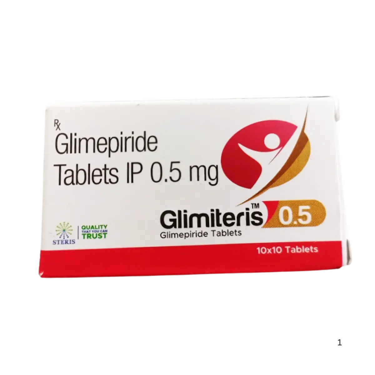 GLIMITERIS 0.5 Tablet is part of the sulfonylurea class of medications and is indicated for the management of type 2 diabetes mellitus in adults. Its primary function is to assist in regulating blood glucose levels, which is crucial for preventing severe diabetes-related complications, including kidney impairments and visual loss. This medication can be prescribed alone or in conjunction with other diabetes treatments. It is recommended that GLIMITERIS 0.5 be taken either just before or with the first meal of the day to enhance its effectiveness. Consistency in timing is important; thus, taking the tablet at the same time every day is advised. The appropriate dosage will be determined by your healthcare provider, who may adjust it over time based on your individual blood sugar readings. It is essential to continue using GLIMITERIS 0.5 even when feeling well, as discontinuation without medical guidance may lead to elevated blood sugar levels, increasing the risk of complications like kidney damage, neuropathy, and potential limb loss. In addition to medication, a comprehensive management strategy that includes a balanced diet, regular physical activity, and weight management is important in controlling diabetes. Recognizing the signs of hypoglycemia—such as sweating, dizziness, and tremors—is vital, and keeping a quick source of sugar on hand is recommended to counteract low blood sugar emergencies. Furthermore, weight gain may be a side effect for some individuals using this medication. It is contraindicated in those with type 1 diabetes, diabetic ketoacidosis, or severe renal or hepatic conditions. Prior to starting this medication, inform your healthcare provider of any history of cardiovascular issues, endocrine disorders, or pregnancy and lactation status, as these factors could influence the appropriateness of GLIMITERIS 0.5 for your treatment plan. Regular monitoring of blood sugar levels and periodic blood tests to evaluate liver function and blood cell counts are also likely to be necessary.