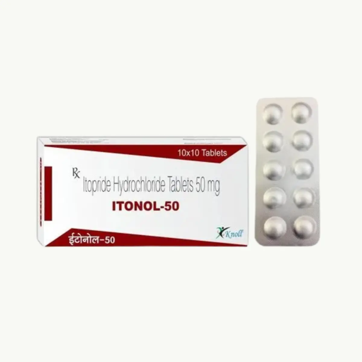 ITONOL 50 is a medication commonly used to help manage gastrointestinal discomfort, particularly issues like bloating and abdominal pain. It supports individuals by promoting better digestive health, aiding the movement of food through the stomach and intestines. This can lead to a reduction in feelings of fullness or discomfort after eating.