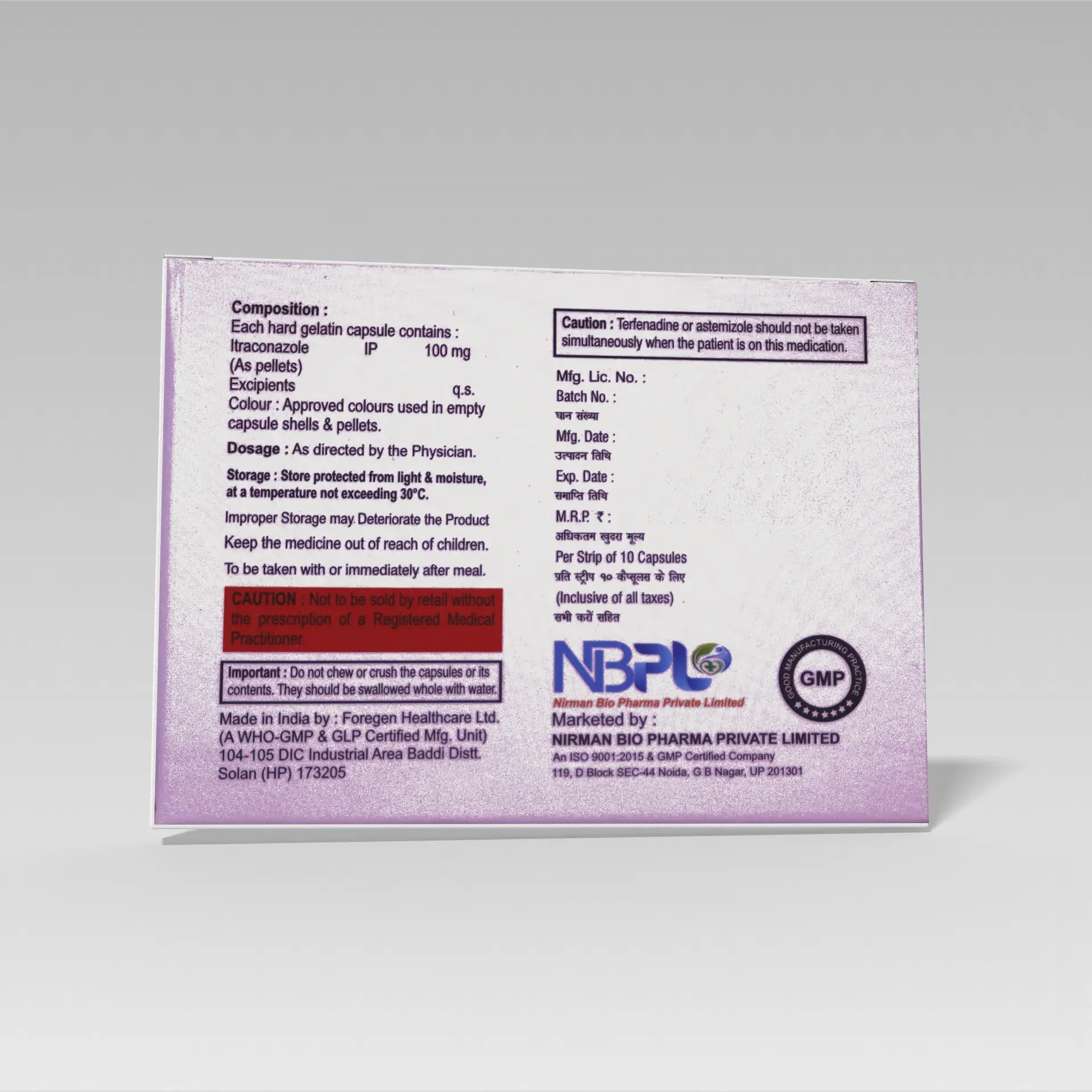 As a leading triazole antifungal, ITRABIO 100 is specifically formulated to effectively treat various fungal infections impacting the skin, nails (onychomycosis), mouth, throat, lungs, and other internal organs. By inhibiting crucial fungal cell membrane synthesis, ITRABIO 100 actively halts the growth and spread of fungi, leading to effective eradication and preventing recurrence.