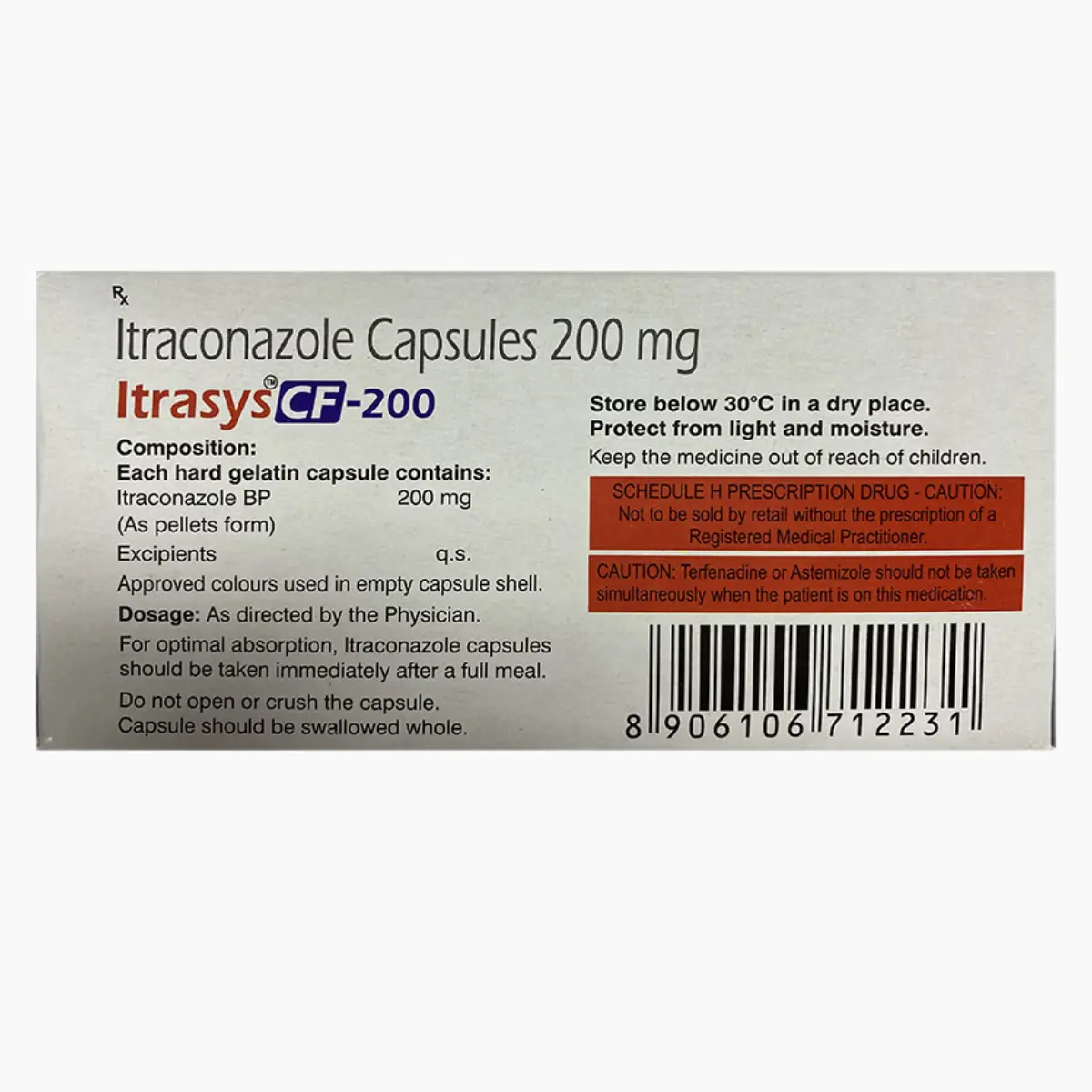 Itrasys CF 200 mg is part of the antifungal medication category, which works by inhibiting the growth of fungi. This capsule is indicated for treating various fungal infections affecting the mouth, throat, vagina, and other areas of the body, including nails. Its mechanism involves disrupting the integrity of the fungal cell membrane, ultimately leading to the death of the fungus. It is essential to follow your healthcare provider’s prescribed dosage and duration, taking the capsule whole, preferably with food. For optimal results, this medication should be administered at consistent intervals, and treatment should be completed as directed, even if symptoms improve before the course is finished. Discontinuing the medication prematurely can lead to a recurrence of the infection, and skipped doses may elevate the risk of developing fungal strains resistant to treatment. If there is no improvement in your condition or if it worsens, it is crucial to inform your healthcare provider. While the most frequently reported side effects include nausea, dizziness, headaches, vomiting, diarrhea, abdominal discomfort, constipation, and indigestion, patients can discuss strategies with their healthcare provider to alleviate these effects. In rare cases, severe allergic reactions can occur; seek immediate medical attention if symptoms such as a severe rash, tingling sensations, breathing difficulties, or swelling in the face, lips, tongue, or throat arise.