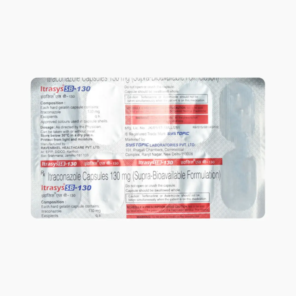 Itrasys SB 130mg Capsule is classified under the antifungal medications. Its primary mechanism involves inhibiting fungal growth, effectively targeting infections that may affect various areas of the body, such as the mouth, throat, vagina, and onychomycosis impacting fingernails and toenails. The medication operates by disrupting the integrity of the fungal cell membrane, leading to cell death. It is essential to follow the prescribed dosage and duration as determined by your healthcare provider. The capsules should be taken intact and may be ingested with food for better tolerance. To maximize the effectiveness of this treatment, adhere to a consistent schedule, ensuring doses are spaced evenly throughout the day. It is crucial to complete the entire course of medication, even if symptoms improve before finishing your prescription; premature cessation can lead to a resurgence of the infection, and missed doses may increase the risk of developing resistant fungal strains. If there is no improvement in your condition or if symptoms worsen, contact your healthcare provider for further evaluation. Be aware that some individuals may experience side effects including but not limited to nausea, dizziness, headache, vomiting, diarrhea, abdominal discomfort, constipation, and indigestion. If you experience severe reactions, such as signs of an allergic response including a significant skin rash, tingling sensations, difficulty breathing, or swelling of the face, lips, tongue, or throat, seek immediate medical attention. Those with certain medical histories, such as heart failure or compromised immune systems, should discuss their situation with a doctor prior to use, as well as patients with known kidney or liver issues.