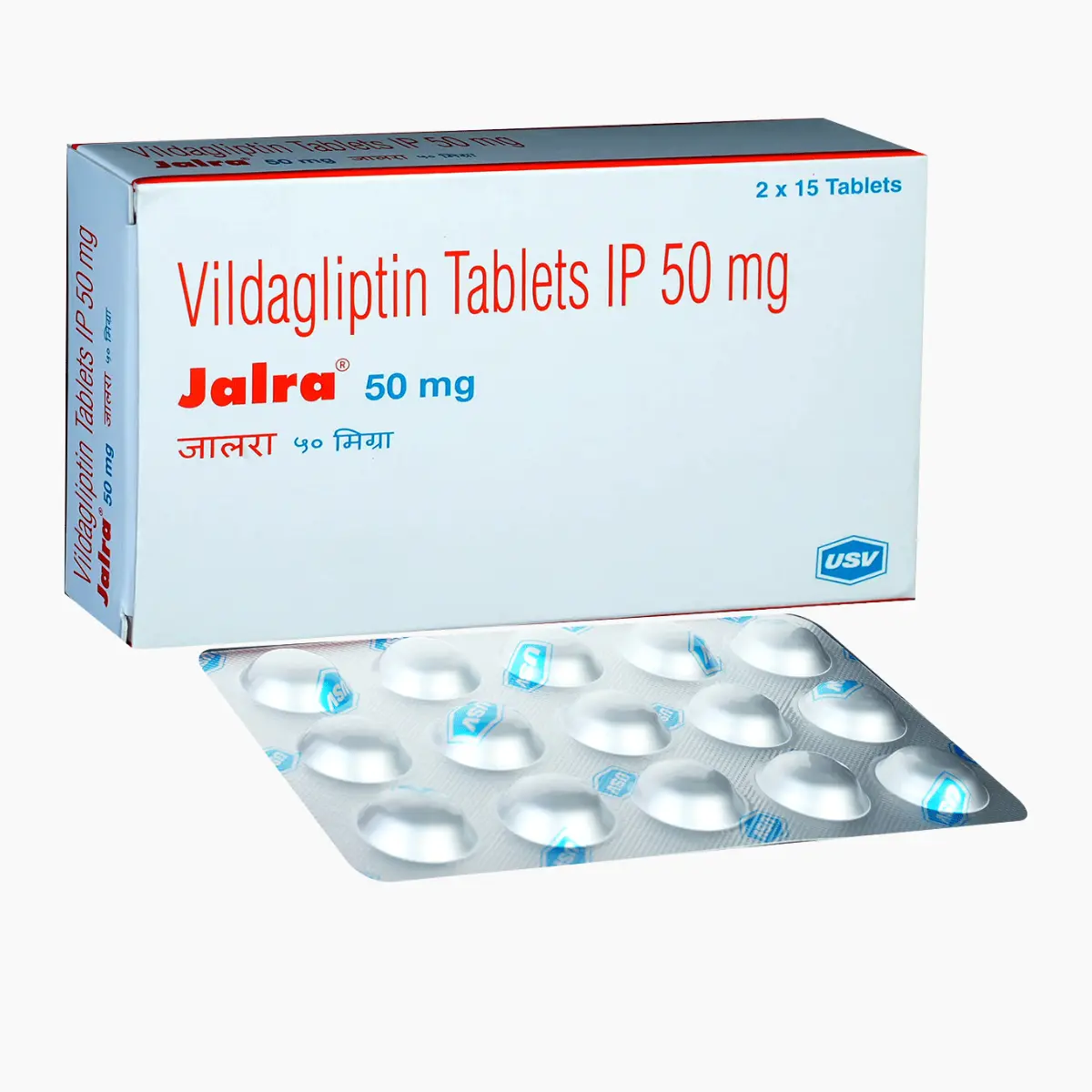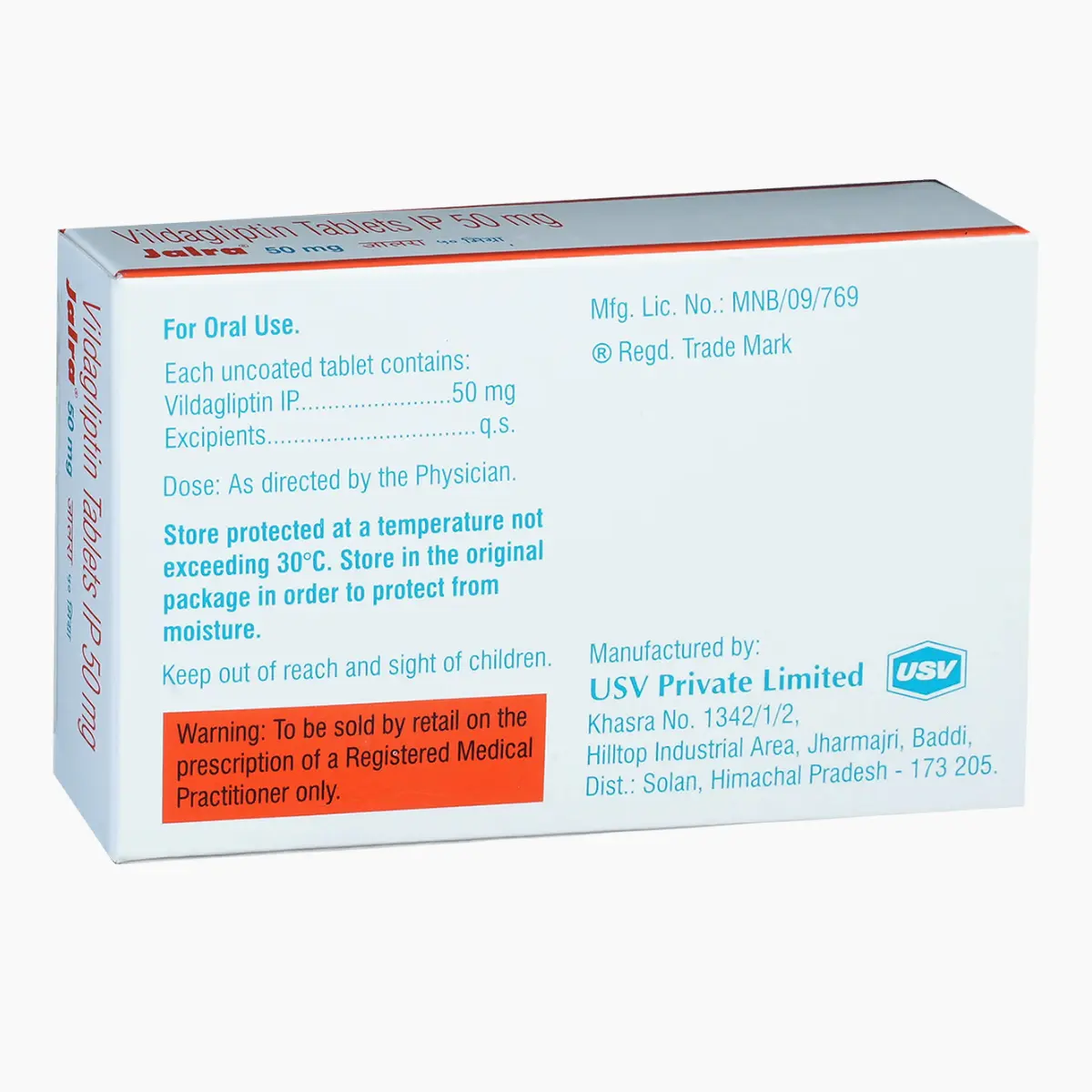 Jalra 50mg Tablet is indicated for the management of type 2 diabetes mellitus. It is intended to be used in conjunction with a balanced diet and consistent physical activity to assist in regulating blood glucose levels. This regulation is crucial in averting severe complications associated with diabetes, such as renal impairment and vision loss. Typically, Jalra 50mg is prescribed when lifestyle modifications and other medications alone are inadequate for achieving the desired glycemic control. It may be administered either as a standalone treatment or in conjunction with other antidiabetic agents. The medication can be ingested with or without food, and the prescribed dosage will be tailored to your individual health status and blood sugar findings. Adherence to your healthcare provider’s recommendations is essential. It is advisable to take the medication consistently at the same time daily to maximize its effectiveness. Discontinuation of the medication should only occur upon your healthcare provider’s direction. Maintaining the recommended dietary and exercise regimen is vital while using this medication, as lifestyle choices significantly influence diabetes management. Awareness of potential side effects, especially symptoms indicative of hypoglycemia, such as dizziness, sweating, or faintness, is critical. Carrying a source of sugar or glucose on hand can be beneficial for managing such symptoms. If side effects are persistent or cause concern, reach out to your healthcare provider. Prior to commencing treatment, inform your healthcare provider of any history of kidney issues, cardiovascular problems, or pancreatic concerns. Pregnant or nursing individuals should seek medical advice before starting this medication. Additionally, disclose any other medications you are currently taking, as they could interact with Jalra. Moderation of alcohol consumption is advised while on this treatment, as it may elevate the risk of low blood sugar. Regular monitoring of kidney function and blood glucose levels may be required to ensure the effectiveness of the treatment.