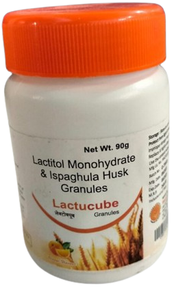 Lactucube Granules [Lactitol Monohydrate & Ispaghula Husk] This [granule] formulation is designed to aid in digestive health. Lactitol monohydrate helps to soften stools, while ispaghula husk adds bulk, making it effective for managing constipation and promoting regular bowel movements.