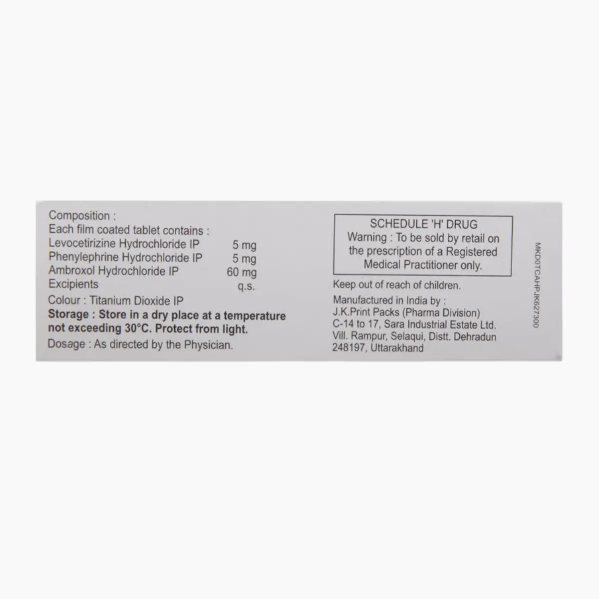 The active ingredients work together in a complementary manner. Ambroxol is mucolytic, which means it helps in thinning and loosening mucus in the airways, making it easier to cough out. Phenylephrine acts as a decongestant, helping to reduce swelling in the nasal passages and alleviate congestion. Levocetirizine is an antihistamine that can help relieve allergy symptoms such as sneezing, runny nose, and itchy eyes.
