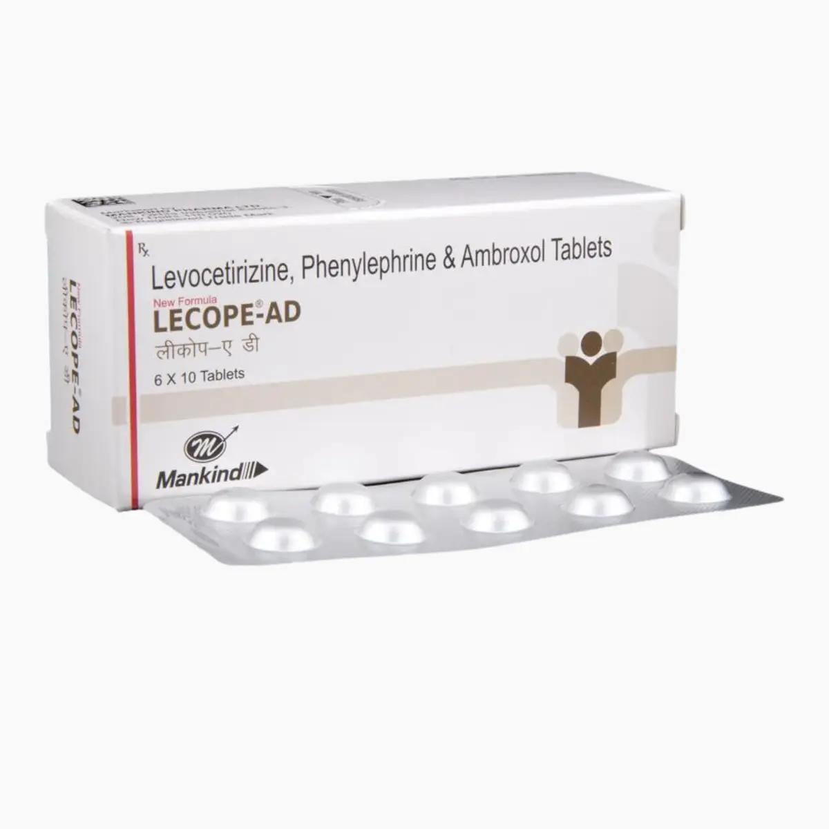 LECOPE AD is a combination medication commonly used to help relieve symptoms associated with respiratory conditions, particularly those that involve a cough, nasal congestion, and allergic reactions. It supports patients by providing relief from discomfort, allowing for easier breathing and improved quality of life during episodes of respiratory distress.