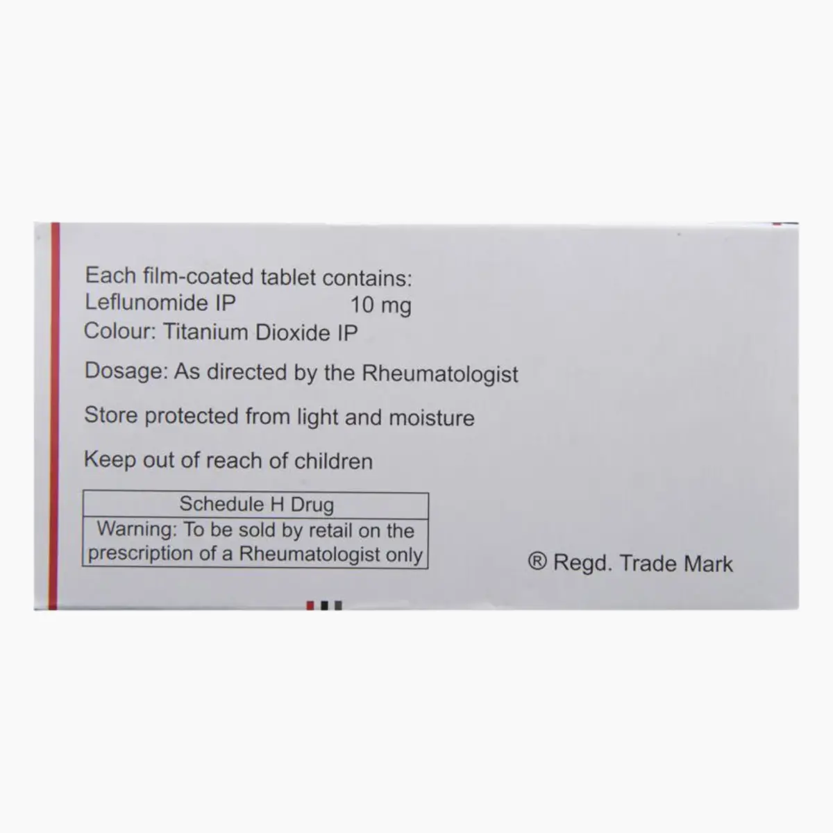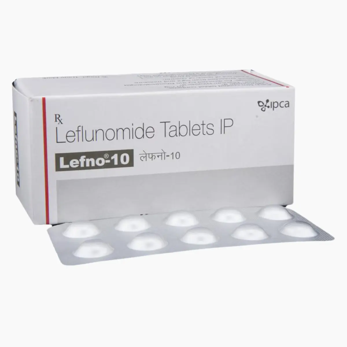 Lefno 10 mg Tablet is indicated for the management of rheumatoid arthritis and psoriatic arthritis. This medication plays a significant role in slowing the progression of these conditions while alleviating symptoms such as pain, inflammation, and redness associated with the diseases. Lefno can be administered with or without food, and it is important to take it consistently at the same time daily to achieve optimal results. Adherence to the prescribed regimen is crucial, even if symptoms improve, as completing the full course is essential for effectiveness. While using Lefno, some individuals may experience side effects, which can include nausea, headaches, dyspepsia, skin rashes, diarrhea, and elevations in liver enzymes. Should these side effects persist or worsen, it’s advisable to consult with a healthcare provider who can offer strategies to mitigate or prevent these adverse reactions. Prior to its use, patients should disclose any existing conditions related to heart, kidney, or liver health, as well as any other medications being taken, to ensure the safe use of Lefno. Routine blood tests may be recommended to monitor liver function and blood counts during treatment. Pregnant individuals and those who are breastfeeding should seek medical advice before starting this medication. Use this medicine only under medical supervision. Follow the dose and schedule exactly as advised. Do not stop abruptly without guidance. Keep a record of any unusual symptoms and share them with your clinician. Combine therapy with appropriate lifestyle measures and routine monitoring as recommended.