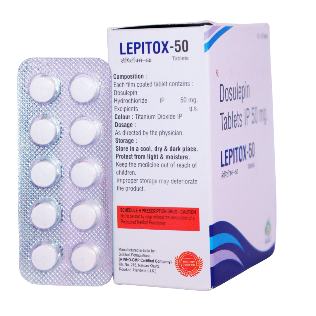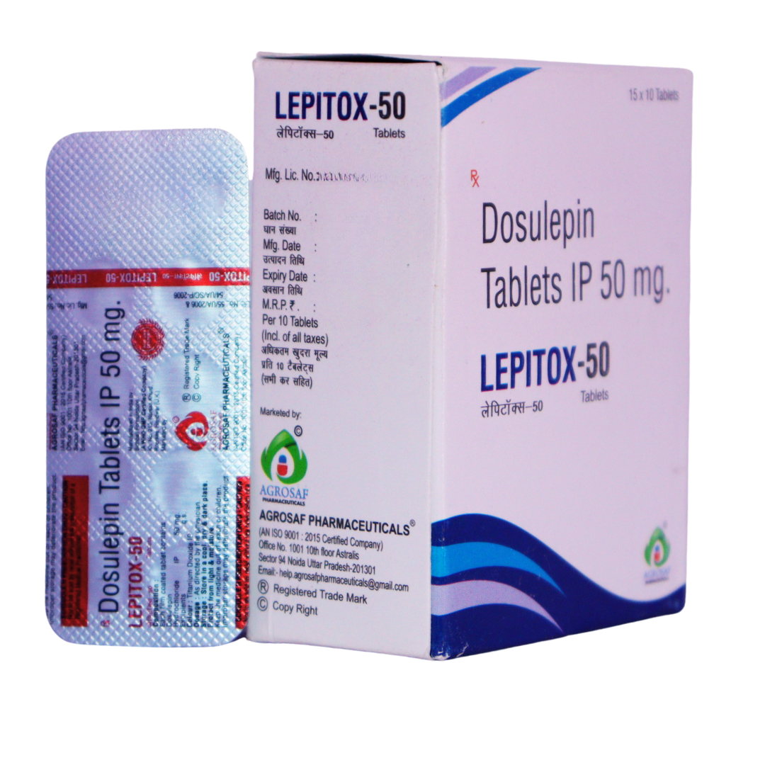 Lepitox-50 contains Dosulepin 50 mg, a tricyclic antidepressant used to treat depression and anxiety disorders. Dosulepin works by increasing the levels of neurotransmitters in the brain, helping to improve mood and alleviate feelings of sadness and anxiety. This medication can also provide relief from chronic pain conditions, making it a versatile option for patients experiencing both mental health and physical symptoms.