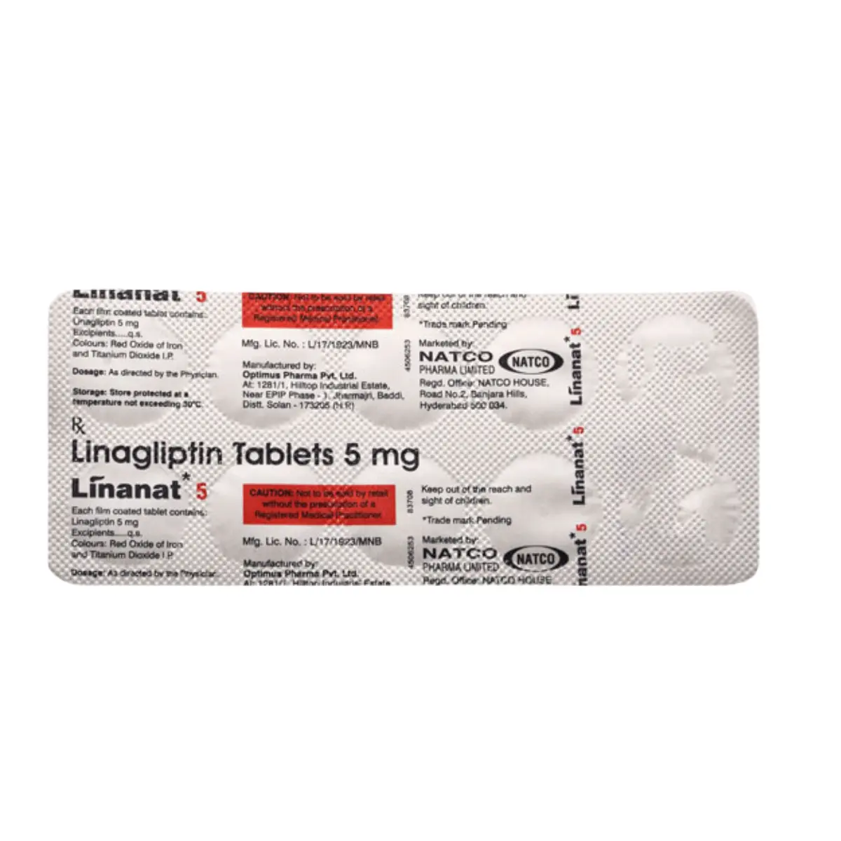 Linatin 5mg Tablet is indicated for the management of type 2 diabetes mellitus. It is intended to be used alongside a balanced diet and regular physical activity to help regulate blood sugar levels, which can mitigate the risk of serious complications associated with diabetes, such as renal impairment and vision loss. This medication is typically prescribed when lifestyle modifications and other treatments are insufficient for controlling glucose levels effectively. Patients may receive a prescription for Linatin alone or in conjunction with other antidiabetic medications. The administration of this tablet can occur with or without meals, and the dosage will be tailored to your specific needs and blood sugar monitoring results. It is crucial to follow your healthcare provider’s instructions closely and not to discontinue usage without medical advice. Maintaining the recommended dietary and exercise regimen is essential for effective diabetes management. Among the potential adverse effects, awareness of hypoglycemia, characterized by symptoms like dizziness, sweating, and faintness, is particularly important; patients should be prepared to manage these symptoms with fast-acting carbohydrates if they arise. Additionally, some individuals may experience nasopharyngitis. If side effects persist or become concerning, it is important to reach out to your healthcare provider. Prior to initiating treatment, inform your doctor of any history of renal, cardiac, or pancreatic conditions, as well as any other medications currently being taken, since drug interactions may occur.