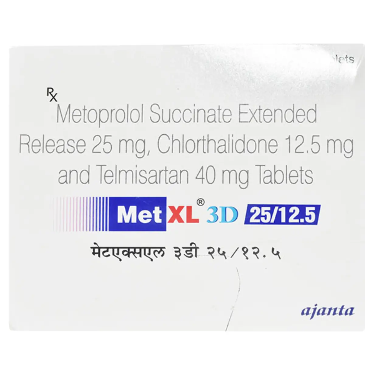 The active ingredients in MET XL 3D include Chlorthalidone, Metoprolol Succinate, and Telmisartan. Chlorthalidone is a diuretic that helps the body eliminate excess fluid, which can contribute to lower blood pressure. Metoprolol Succinate is a beta-blocker that works by relaxing blood vessels and slowing the heart rate. Telmisartan is an angiotensin receptor blocker that helps widen blood vessels, further aiding in blood flow and pressure control. Together, these components work synergistically to provide a balanced approach to heart health.