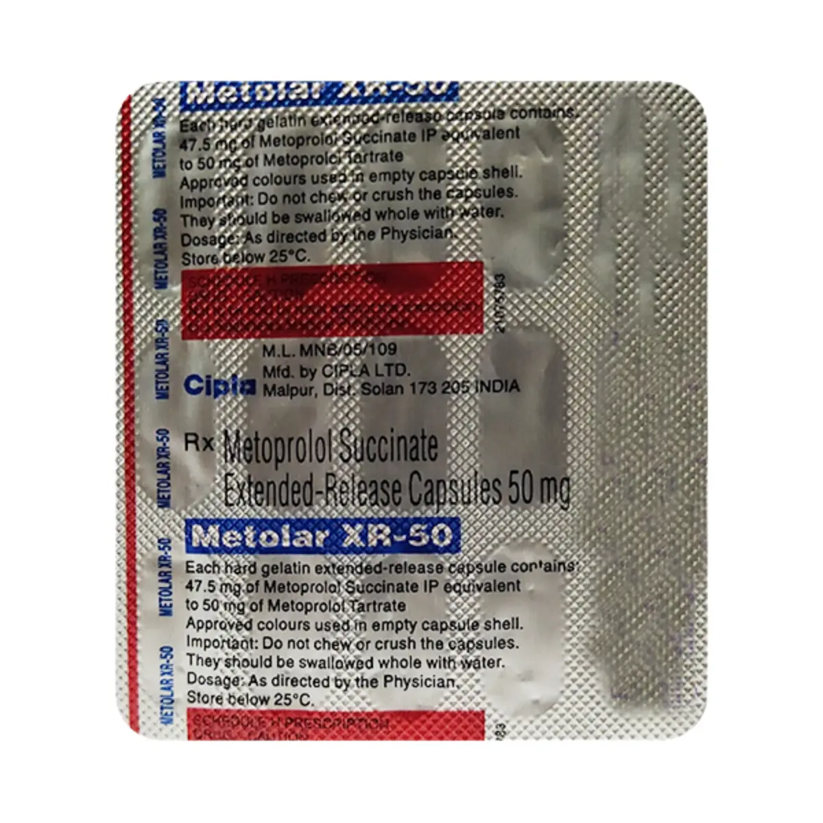 Metolar XR 50 Capsule is classified as a beta-blocker, a category of medications effective in managing several cardiovascular conditions. It is primarily prescribed to address high blood pressure, a condition that can lead to serious health complications if left untreated. Additionally, it is utilized for the relief of angina, which is defined as chest pain caused by reduced blood flow to the heart. This medication also assists in regulating abnormal heart rhythms, known as arrhythmias, and is known to help prevent debilitating migraines, as well as reduce the risk of future cardiovascular events such as heart attacks and strokes. The administration of Metolar XR 50 can occur as a standalone treatment or in conjunction with other therapies, depending on the patient’s specific medical needs and the severity of their condition. Patients are advised to take the medication consistently, whether on an empty stomach or with food, to optimize its effects. It may take several weeks for individuals to experience the full benefits of the medication, and some may need to maintain long-term use. It is essential for patients to adhere to their prescribed treatment regimen, even in the absence of visible symptoms, as high blood pressure often does not present noticeable signs. Discontinuing the medication could lead to a deterioration of the condition.