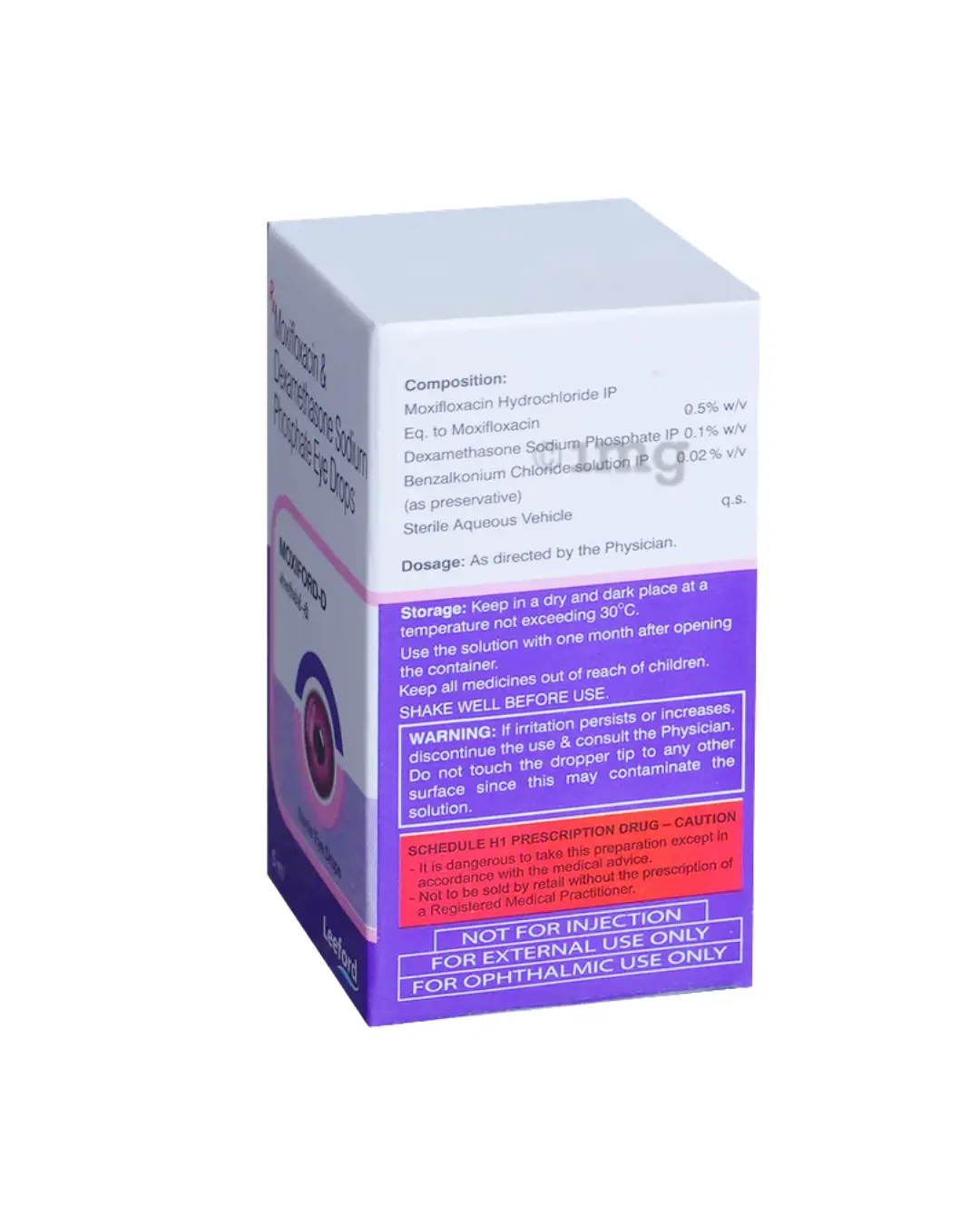 Moxiford D Eye Drop is a prescribed medication that combines several active ingredients to effectively combat bacterial infections affecting the eyes. This formulation works by inhibiting bacterial growth, which in turn alleviates symptoms such as redness, itching, and swelling associated with these infections. It is important to use Moxiford D Eye Drop solely in the eye that is affected and adhere to the dosage and treatment duration as specified by your healthcare provider. Prior to application, ensure that your hands are clean to prevent contamination. Always refer to the label for specific instructions regarding its use. It is crucial to complete the entire course of therapy, even if symptoms improve, as premature discontinuation may result in a recurrence or worsening of the infection. Typically, patients may experience side effects such as discomfort or irritation where the drop is applied. If these sensations persist or are bothersome, it is advisable to communicate this to your doctor. In cases where the drop inadvertently contacts the ears, nose, or mouth, rinse the area thoroughly with water. Additionally, individuals with allergies to any components of this medication or those taking other prescriptions should inform their healthcare provider. Caution is advised when performing tasks that require clear eyesight, such as driving or operating heavy machinery, immediately following application, as temporary vision blurring may occur.
