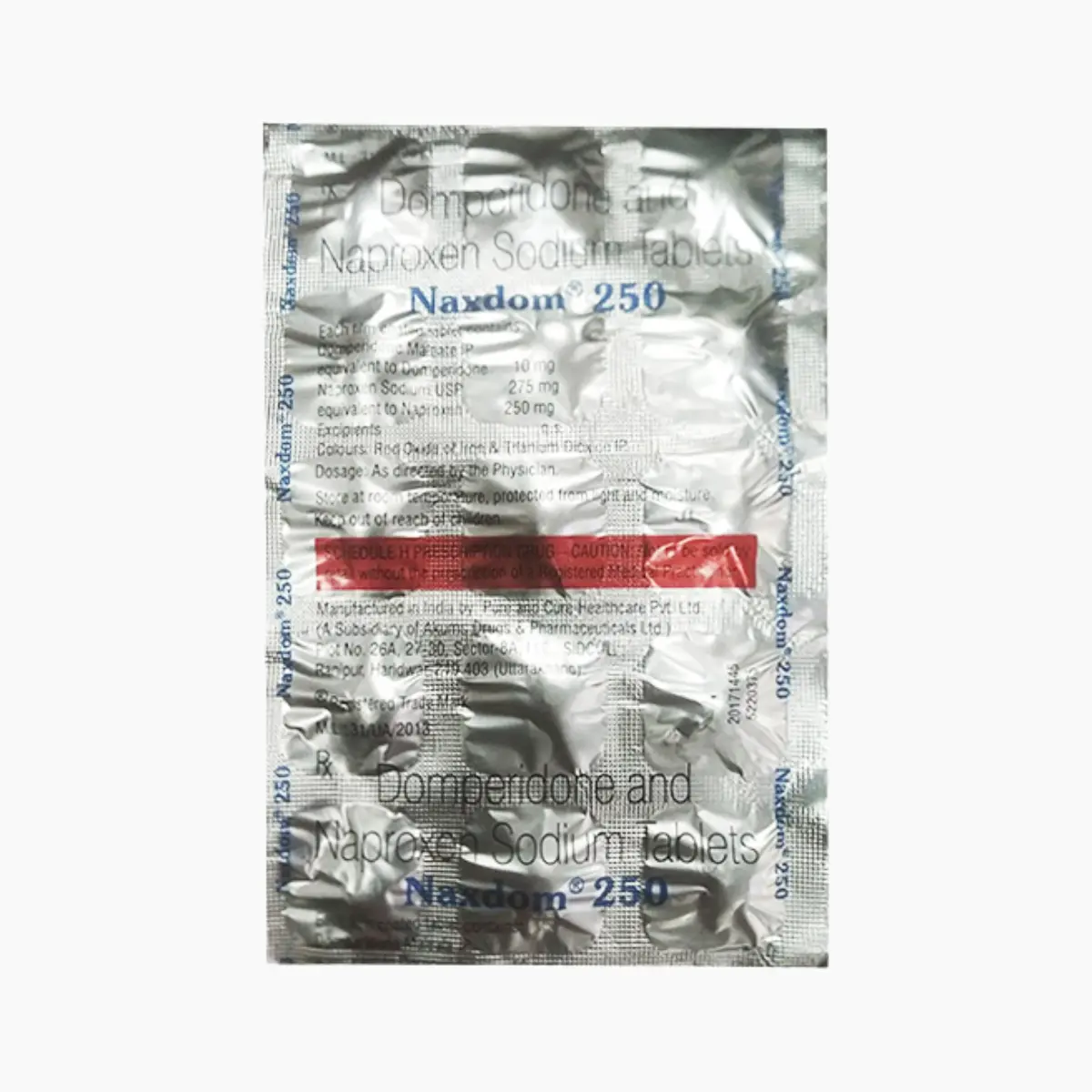 Naxdom 250 mg Tablet is utilized for the prevention of migraine headaches. This medication works by inhibiting the release of specific chemical substances that lead to pain, inflammation, and fever. Additionally, it acts on the brain to alleviate nausea and vomiting that are often associated with migraine attacks. Naxdom 250 may be prescribed as a standalone treatment or in conjunction with other medications based on the physician’s assessment of the patient’s needs. It may be taken with or without food, depending on individual preference. The prescribed dosage and duration of treatment will be tailored to the severity of the migraine and the patient’s response to the therapy. It is important to use this medication consistently and not to stop taking it abruptly without consulting a healthcare provider, as your doctor will determine the appropriate time for discontinuation based on your condition. While using Naxdom 250, patients might experience common side effects, including headaches, tinnitus, dizziness, fatigue, skin rashes, and visual disturbances. Should these effects persist or worsen, it is essential to inform your doctor, who may recommend strategies to alleviate these symptoms. In general, aim to use the lowest effective dose to manage your symptoms. Prior to initiating treatment, disclose any existing health issues to your healthcare provider. Additionally, inform your doctor about all other medications you are currently taking, as interactions may occur. Pregnant individuals and those who are nursing should seek medical advice before using this medication.
