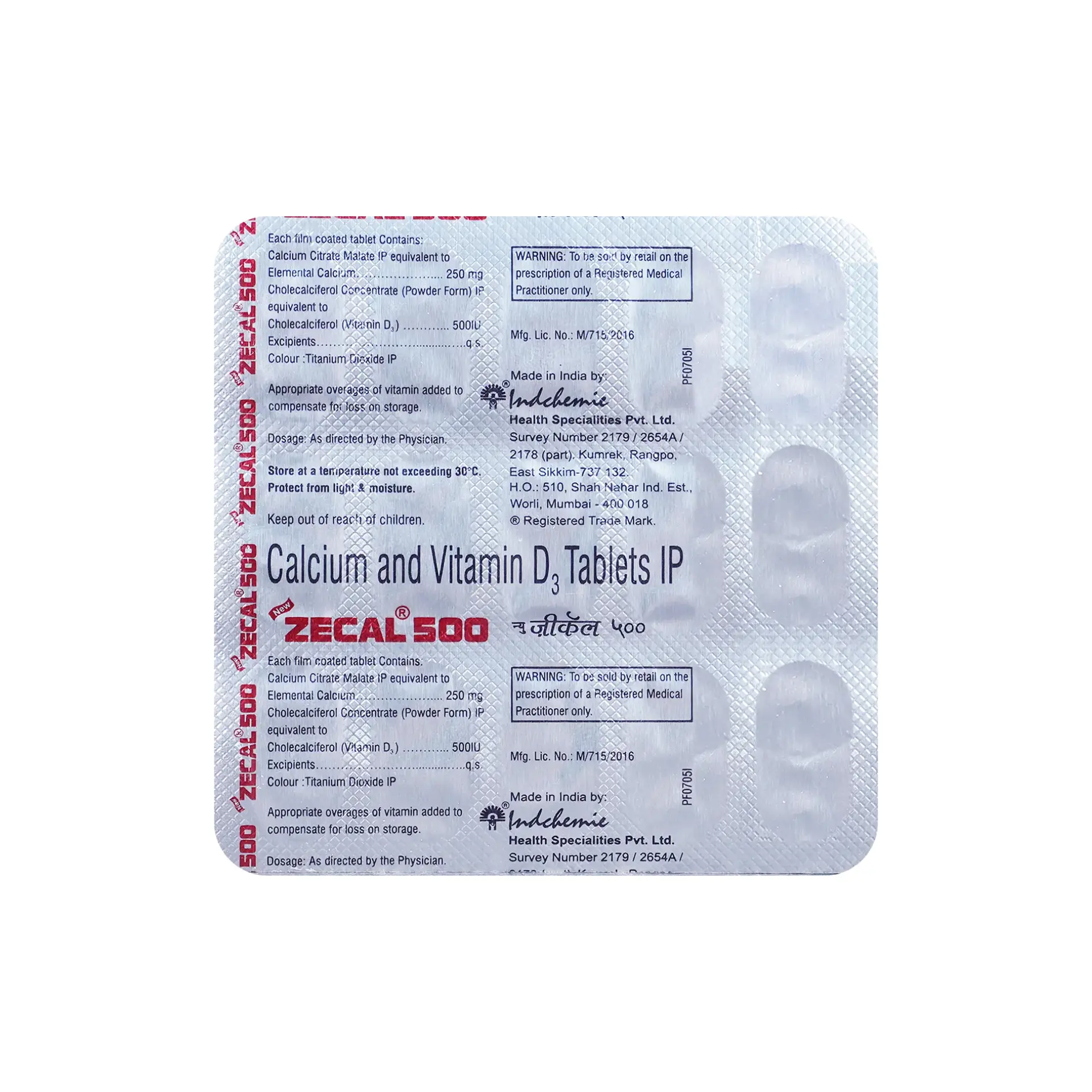New Zecal 500 (Calcium (250mg) + Vitamin D3 (500IU))