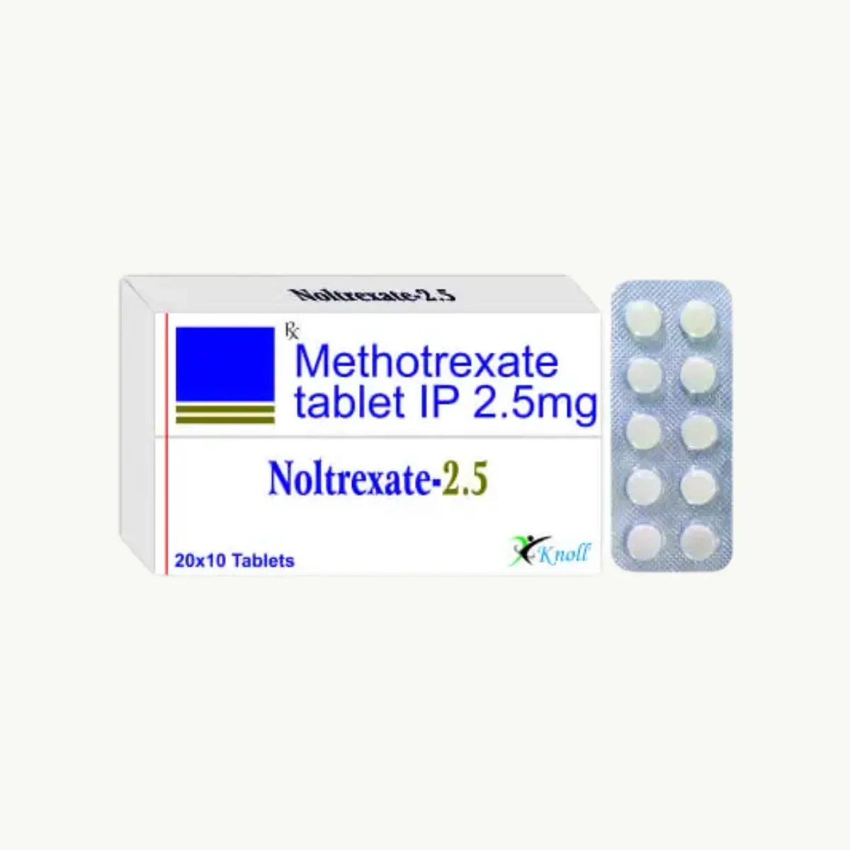 Noltrexate 2.5mg Tablet is a pharmaceutical agent utilized in the management of certain types of cancer, affecting areas such as the breast, head, neck, lungs, blood, bones, lymphatic system, and uterus. In addition to its oncology applications, this medication is effective in treating rheumatoid arthritis, severe cases of psoriasis that do not respond to other treatments, and Crohn’s disease. It can be prescribed as a standalone treatment or in conjunction with other medications, depending on the patient’s condition and medical history. It is crucial to adhere strictly to the dosage and instructions provided by your healthcare provider, as exceeding the recommended dose may lead to serious complications. While the therapeutic effects may not be immediate and could take weeks or even months to manifest, it is important not to discontinue use without consulting your doctor. The consumption of alcohol while on this medication is discouraged, as it may elevate the risk of liver damage. Regular medical follow-ups and assessments are necessary to monitor your response to the therapy and to manage any potential side effects effectively. Use this medicine only under medical supervision. Follow the dose and schedule exactly as advised. Do not stop abruptly without guidance. Keep a record of any unusual symptoms and share them with your clinician. Combine therapy with appropriate lifestyle measures and routine monitoring as recommended.