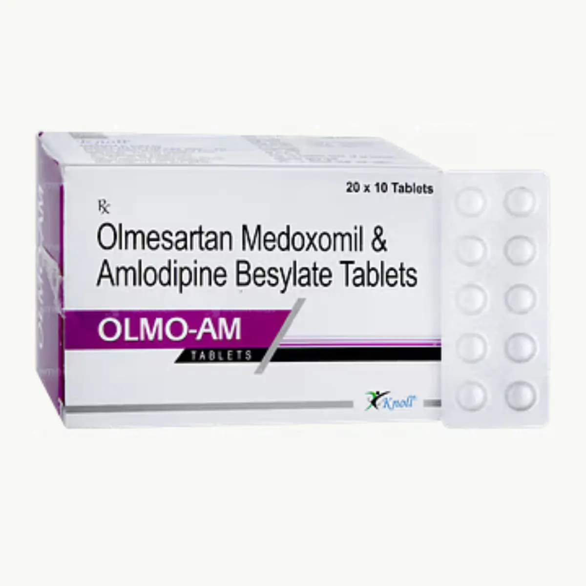 Olmo AM 20mg/5mg Tablet combines two active ingredients that work together to help manage hypertension, which is a condition characterized by elevated blood pressure. Effectively managing blood pressure is crucial, as it significantly lowers the risk of serious cardiovascular events, such as heart attacks and strokes in the future. This medication can be taken either on an empty stomach or with food, but it is advisable to take it consistently at the same time every day, as directed by a healthcare provider. The prescribed dose will vary based on individual health conditions and responses to the treatment. It is essential to continue using this medication even if you feel well, as its purpose is to maintain lower blood pressure levels, thereby reducing the likelihood of heart-related complications. To enhance the effectiveness of this treatment, adopting a healthier lifestyle is recommended, which includes increasing physical activity, quitting smoking, and following a diet that is low in salt and fat. The use of this medication will involve regular monitoring of blood pressure, and your kidney function may also be evaluated periodically to ensure safety and effectiveness. Use this medicine only under medical supervision. Follow the dose and schedule exactly as advised. Do not stop abruptly without guidance. Keep a record of any unusual symptoms and share them with your clinician. Combine therapy with appropriate lifestyle measures and routine monitoring as recommended.