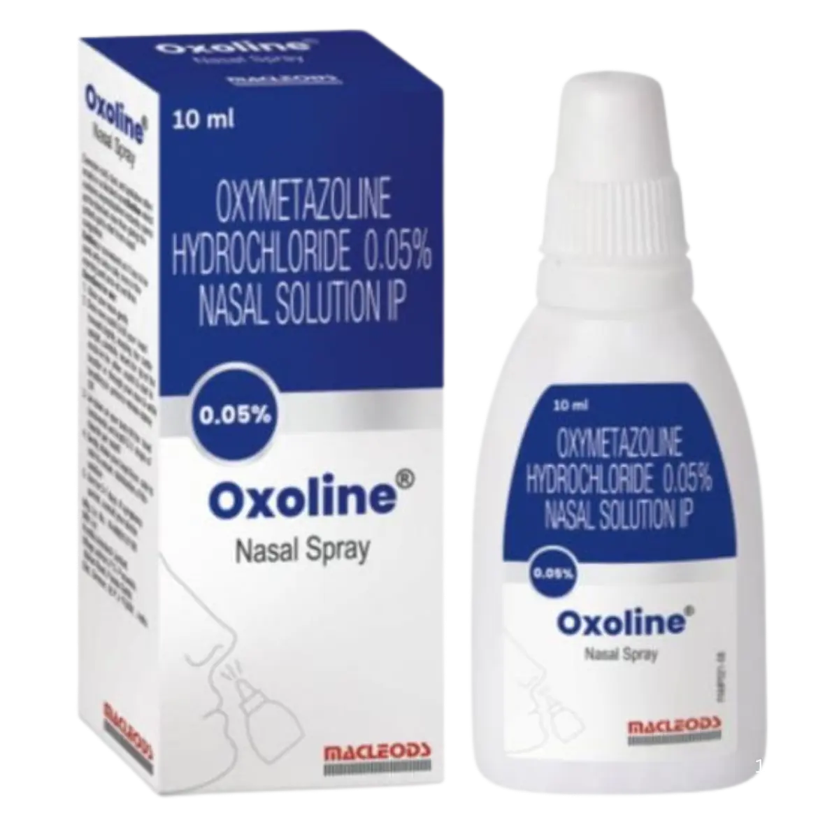 OXOLINE Nasal Drops are indicated for alleviating nasal congestion caused by conditions such as the common cold, influenza, hay fever, and other allergic reactions. The medication works by constricting the blood vessels in the nasal passages, thereby reducing swelling and relieving discomfort associated with a blocked nose. It is essential to follow your healthcare provider’s instructions regarding usage to ensure safety and effectiveness. This product is intended for temporary relief and should not be used more frequently or for extended periods than advised. Prior to administration, gently blow your nose to clear nasal passages. While using the spray, close one nostril and apply the medication in the other, then take a deep sniff to ensure it penetrates adequately. Repeat the process for the opposite nostril. The onset of relief is typically rapid, providing effects that may last several hours. However, using the medication too frequently or for excessive durations could lead to worsened symptoms rather than improvement. Typically, side effects such as a burning sensation in the nasal area, throat irritation, nausea, headaches, and a feeling of dryness in the nose can occur, though they are generally mild. Should any side effects persist or cause concern, seek advice from your physician. Always inform your doctor of any pre-existing medical conditions, particularly heart issues, hypertension, thyroid disorders, glaucoma, or enlarged prostate. Additionally, it is crucial to discuss any other medications you are currently taking to ensure compatibility. Consult your healthcare professional if you are pregnant or nursing, as they can provide guidance based on your specific circumstances.