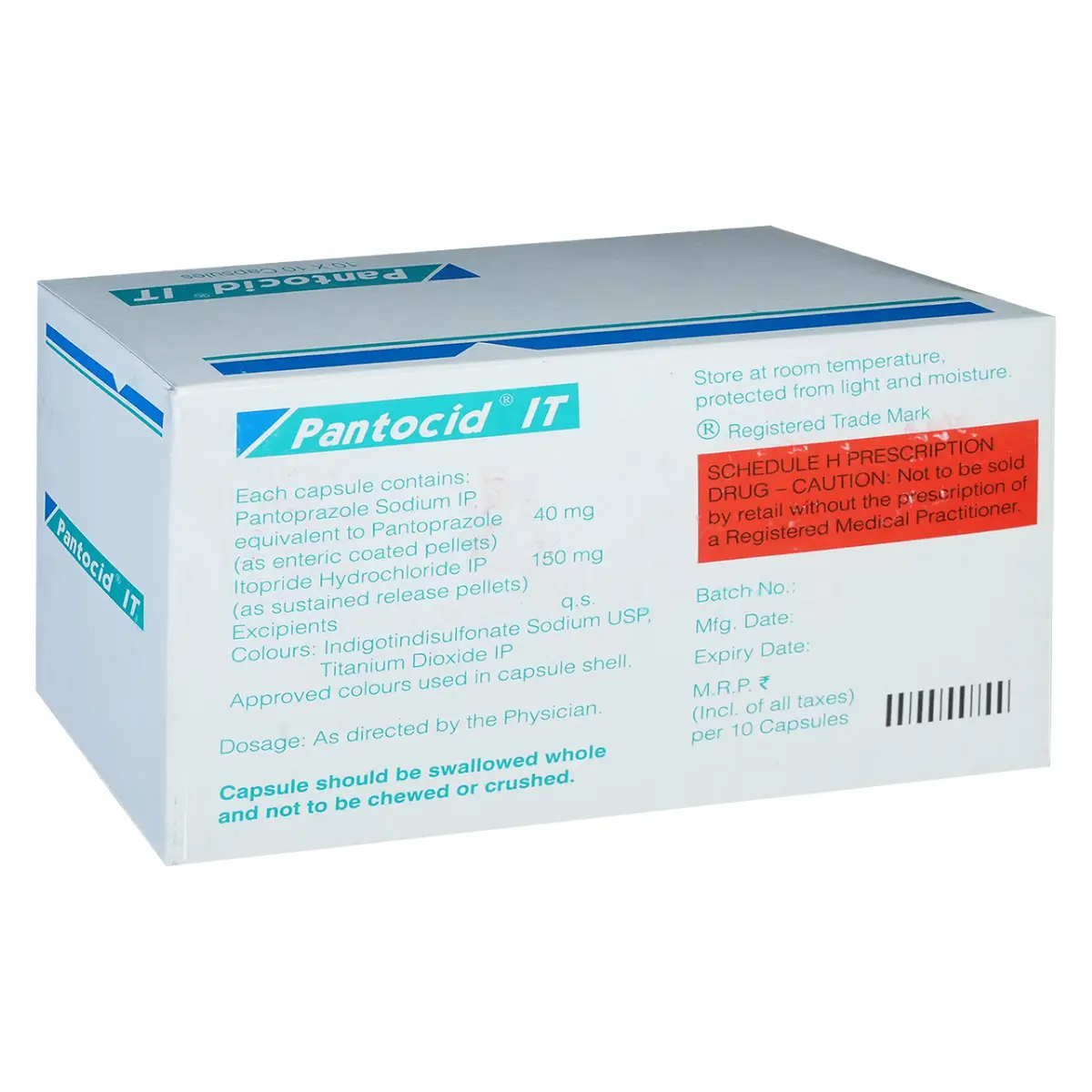 Pantocid IT Capsule SR is utilized for the treatment of gastroesophageal reflux disease (GERD), commonly known as acid reflux, as well as functional dyspepsia, which is characterized by indigestion. This medication alleviates discomfort associated with acidity, such as heartburn, stomach pain, and irritation in the gastrointestinal tract. Additionally, it works by neutralizing gastric acid and aids in the expulsion of gas, thereby reducing abdominal discomfort. The recommended method of administration is to take the capsule without any food, following the dosage and duration prescribed by a healthcare professional. The dosage prescribed will vary based on the individual’s specific condition and their response to the treatment. It is essential to continue the medication for the entire duration suggested by your healthcare provider; discontinuing it prematurely may lead to a resurgence of symptoms or a possible deterioration in your condition. It is advisable to inform your healthcare team about any other medications you are currently taking, as interactions may occur. Commonly reported side effects include diarrhea, abdominal pain, headaches, gas, and an increase in saliva production. Most of these effects are usually temporary and generally improve over time. If you experience any concerning side effects, it is important to seek medical advice. Be aware that this medication may cause dizziness and drowsiness; therefore, refrain from driving or engaging in tasks that require alertness until you are familiar with how it affects you. It is recommended to avoid alcohol consumption during treatment, as it may exacerbate feelings of drowsiness. Enhancing your diet by including cold milk and steering clear of hot beverages, spicy foods, or chocolate can contribute to better treatment outcomes. Prior to initiating this treatment, it is crucial to inform your doctor if you have any history of kidney issues. Additionally, mention if you are pregnant, planning to conceive, or currently breastfeeding.