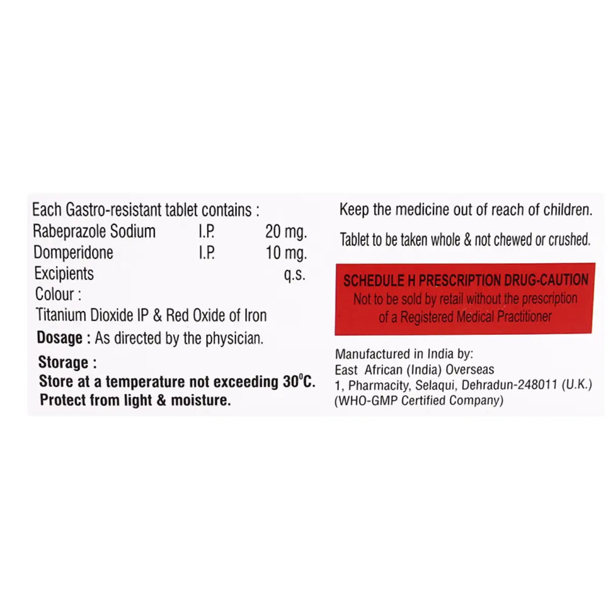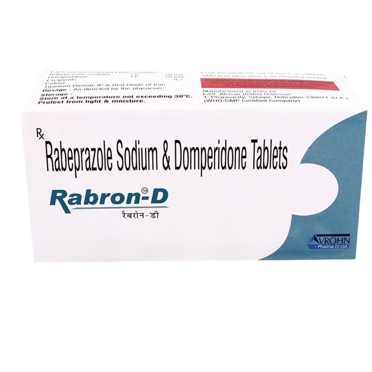 Rabron-D Tablet is a formulation that combines multiple ingredients aimed at managing gastroesophageal reflux disease, commonly referred to as acid reflux. This medication is designed to alleviate various symptoms associated with acidity, including but not limited to heartburn, discomfort in the stomach, and irritation. By neutralizing stomach acid, it facilitates the comfortable passage of gas, thereby alleviating feelings of bloating and other related stomach issues. It is typically advised to take Rabron-D Tablet on an empty stomach, following the dosage and duration guidelines provided by a healthcare professional. The prescribed dosage will be tailored to your specific condition and your body’s response to the medication. It is crucial to adhere to the treatment plan as recommended; discontinuing the medication prematurely may lead to a resurgence of symptoms and potentially exacerbate your condition. It is essential to inform your healthcare provider about any other medications you are currently taking, as there may be interactions that could affect the efficacy of this treatment or increase the likelihood of adverse effects. Use this medicine only under medical supervision. Follow the dose and schedule exactly as advised. Do not stop abruptly without guidance. Keep a record of any unusual symptoms and share them with your clinician. Combine therapy with appropriate lifestyle measures and routine monitoring as recommended.