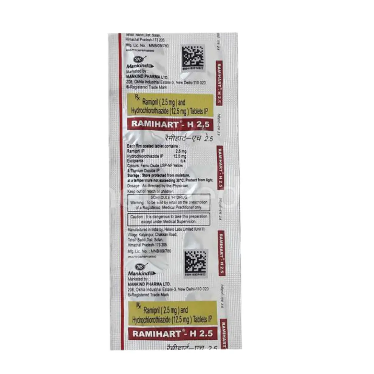 Ramihart 2.5 Capsule is commonly utilized for the management of hypertension and heart failure. It may also be indicated following a myocardial infarction. This medication plays a role in reducing the likelihood of future cardiac events such as heart attacks or strokes. Ramihart 2.5 can be administered solo or alongside other therapeutic agents. It may be ingested with or without food, but it is advisable to take it consistently at the same time daily to optimize its effects. Consistent usage is crucial, even if you are feeling well or your blood pressure appears stable, as discontinuation may worsen your condition. Many individuals with high blood pressure may not exhibit any symptoms, thus the importance of ongoing treatment is emphasized. While Ramihart is recognized for its efficacy and safety in prolonged use, incorporating lifestyle modifications such as regular physical activity, weight management, smoking cessation, reduced alcohol consumption, and dietary salt reduction, as recommended by a healthcare provider, can enhance blood pressure control. Typical adverse effects associated with this medication include a persistent dry cough, headaches, and feelings of fatigue. These effects are usually temporary and lessen over time. If any side effects become bothersome or do not subside, it is important to consult your healthcare professional. Prior to initiating treatment with this medication, individuals should inform their doctor of any existing kidney or liver conditions. Pregnant or nursing individuals must seek medical advice before using this drug. Regular evaluations of kidney function, blood pressure, and potassium levels may be conducted during the course of treatment.
