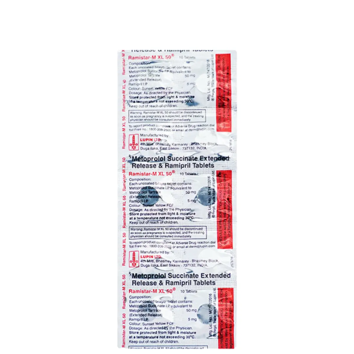 Ramistar-M XL 50 Tablet is indicated for the management of elevated blood pressure levels. By effectively lowering blood pressure, this medication aids in reducing the risk of future cardiovascular events such as heart attacks and strokes. Initiating treatment with Ramistar-M XL 50 can also enhance survival outcomes in patients who have experienced a heart attack. It is recommended to administer the tablet alongside food at a consistent time each day to help maintain stable blood concentrations of the medication. Patients should continue using Ramistar-M XL 50 for the duration prescribed by their healthcare provider. It is essential not to discontinue use without medical guidance, as hypertension is often asymptomatic and stopping treatment may lead to a deterioration of the condition. Incorporating regular physical activity, managing body weight, and adhering to a nutritious diet can further assist in blood pressure control. Regular monitoring of blood pressure, as well as assessments of blood sugar, kidney function, and electrolyte balance, may be required during treatment. Prior to starting this medication, individuals should inform their healthcare provider of any pre-existing liver or kidney conditions. Pregnant or nursing women should seek medical advice before using this medication, as well as disclose any other medications they are currently taking, particularly those for hypertension or heart-related issues.