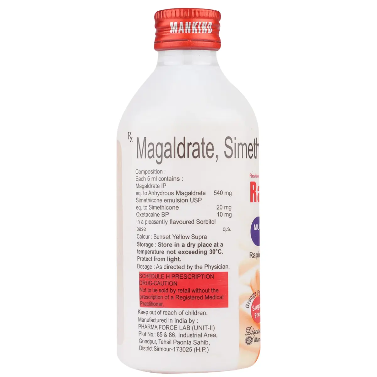 The key active ingredients include Magaldrate, which neutralizes excess stomach acid, providing a soothing effect on the stomach lining. Simethicone helps to reduce gas bubbles, making it easier for the body to eliminate gas and thus reducing bloating and cramping. Oxetacaine acts as a local anesthetic, providing additional relief by numbing the stomach lining and alleviating pain associated with acidity.