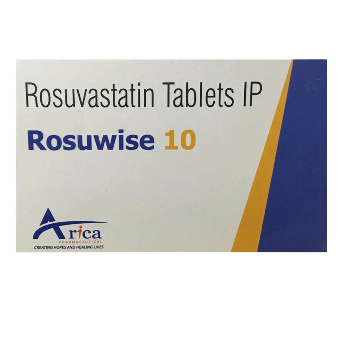 Rosuwise 10 mg Tablets belong to the class of medications known as statins, which are prescribed for the purpose of reducing levels of cholesterol and triglycerides in the bloodstream, thereby lowering the risk of developing cardiovascular diseases. Cholesterol is a lipid that can accumulate within blood vessels, leading to their constriction, which may result in serious events such as heart attacks or strokes. This medication is frequently prescribed and is considered safe for long-term administration. It may be taken either with food or on an empty stomach and can be consumed at any time throughout the day, although establishing a routine time each day is advisable. Many individuals with elevated cholesterol levels do not exhibit any symptoms. However, discontinuing this medication may result in elevated cholesterol levels, worsening the condition and heightening the risk of heart-related issues. Routine monitoring of cholesterol levels is crucial. The use of this medication should be viewed as a component of a broader treatment plan, which includes dietary modifications, consistent physical activity, cessation of smoking, moderation in alcohol consumption, and weight management. While taking this medication, individuals can maintain a normal diet, though it is wise to limit the intake of high-fat foods. It is important to note that side effects may occur, and regular consultations with a healthcare provider are recommended to ensure safety and efficacy in treatment.
