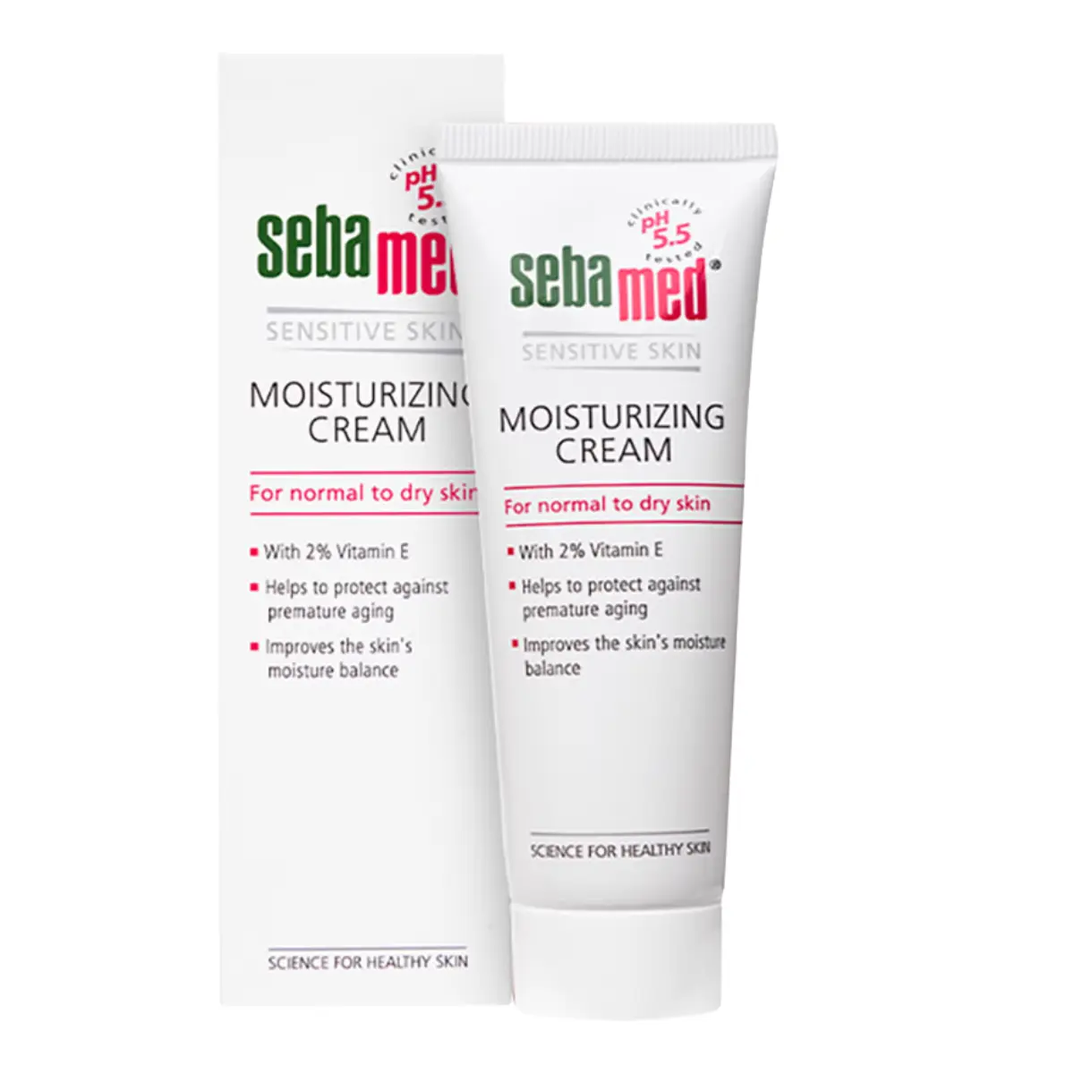 Sebamed Moisturizing Cream is a carefully formulated skincare product that combines various beneficial ingredients aimed at enhancing skin hydration and protection. Its composition includes Water, petrolatum, Myreth-3 myristate, glycerin, Cetearyl alcohol, tocopheryl acetate (a form of Vitamin E), Ceteareth-20, Dimethicone, Sodium PCA, Sodium citrate, Sodium carbomer, a fragrance component, benzyl alcohol, and Phenoxyethanol. This cream is designed to be a lightweight facial moisturizer that can be easily applied under makeup, ensuring that your skin remains soft and well-nourished throughout the day. The inclusion of key ingredients like glycerin and Dimethicone helps to lock in moisture, while tocopheryl acetate acts as an antioxidant, supporting skin health. Users are likely to experience benefits such as improved hydration, protection against environmental aggressors, and a reduction in dryness. Regular application is suggested to achieve optimal results, leading to skin that feels and looks healthier and more radiant. Additionally, this cream aims to restore the skin’s natural barrier, contributing to overall skin integrity and comfort. Use this medicine only under medical supervision. Follow the dose and schedule exactly as advised. Do not stop abruptly without guidance. Keep a record of any unusual symptoms and share them with your clinician. Combine therapy with appropriate lifestyle measures and routine monitoring as recommended.