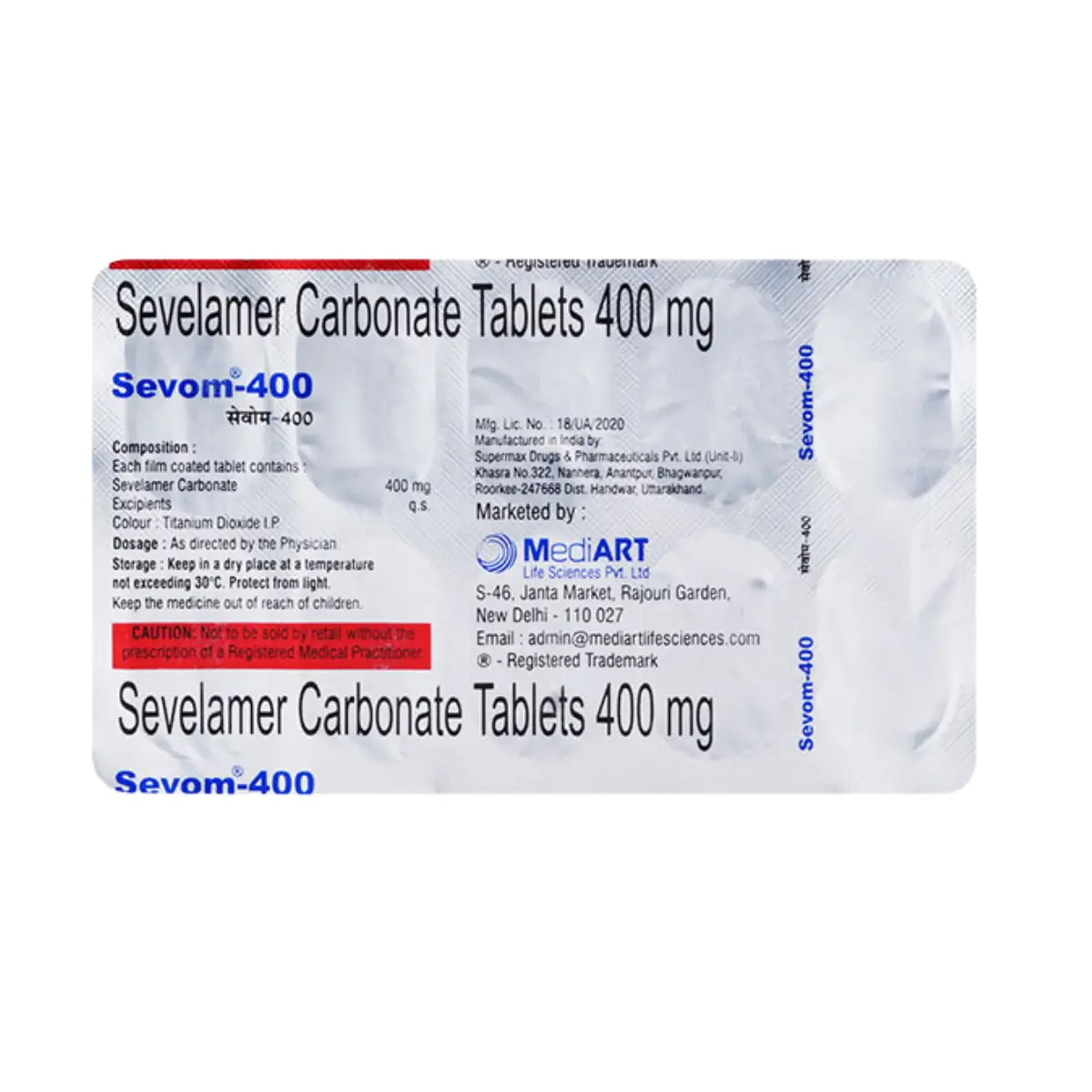 Sevom 400mg Tablet is indicated for managing elevated phosphate levels within the bloodstream, particularly in individuals undergoing dialysis due to severe renal impairment. This medication works by reducing the absorption of phosphate from the gastrointestinal tract, thereby aiding in the reduction of phosphate concentrations in the blood. It is essential for patients to take Sevom 400mg Tablet alongside food to optimize its effectiveness. Adherence to the prescribed dosage and duration, as directed by a healthcare professional, is crucial for achieving the best therapeutic outcomes. Consistent administration at the same time each day is recommended to maintain steady levels of the drug in the system. Along with its benefits, Sevom 400mg Tablet may lead to potential side effects, including abdominal discomfort, diarrhea, excessive gas, vomiting, constipation, and nausea. Additionally, there is a possibility of developing deficiencies in calcium, folic acid, and fat-soluble vitamins A, D, E, and K in the bloodstream. Patients are advised to discuss the need for any necessary supplements with their healthcare provider to ensure balanced nutrient levels. Use this medicine only under medical supervision. Follow the dose and schedule exactly as advised. Do not stop abruptly without guidance. Keep a record of any unusual symptoms and share them with your clinician. Combine therapy with appropriate lifestyle measures and routine monitoring as recommended.