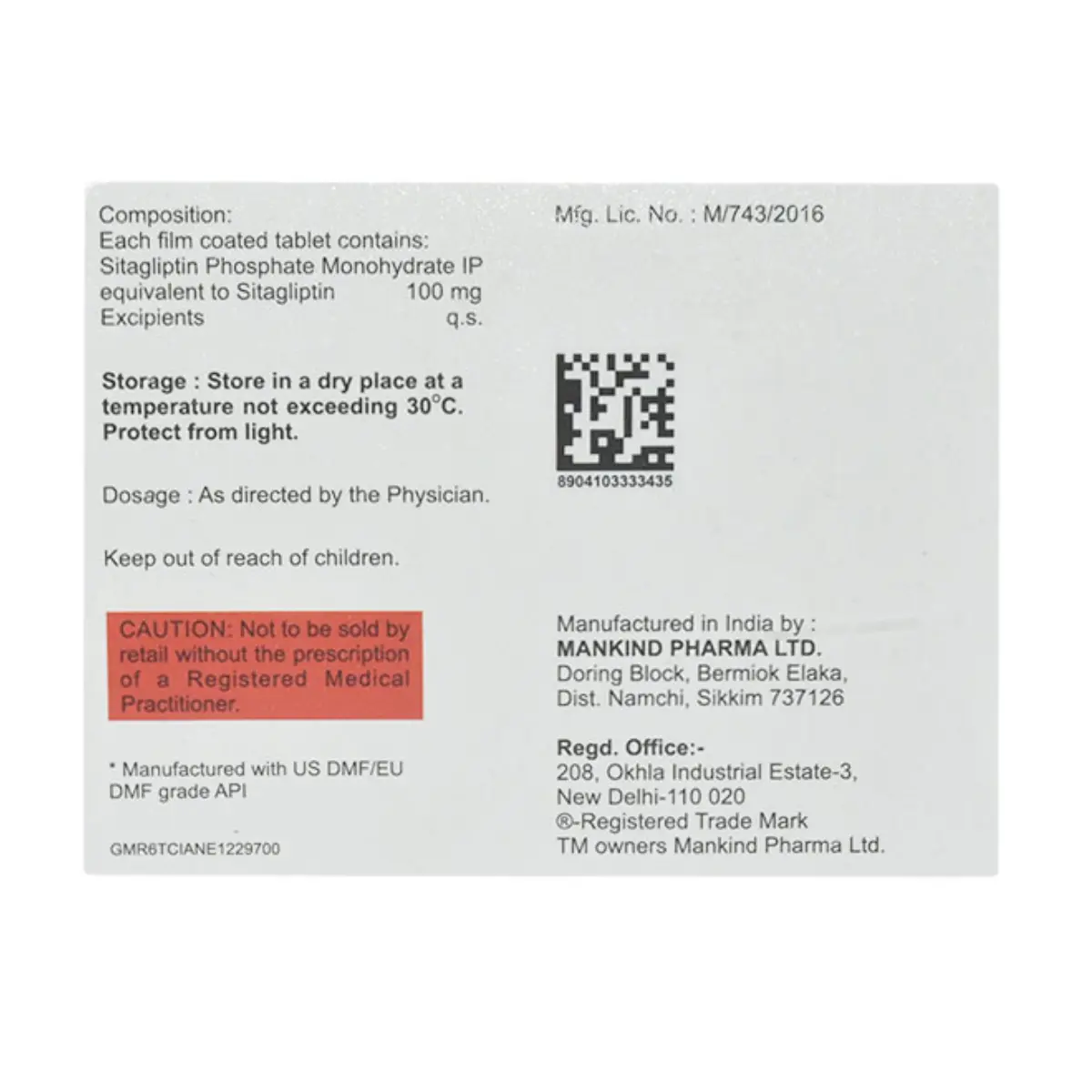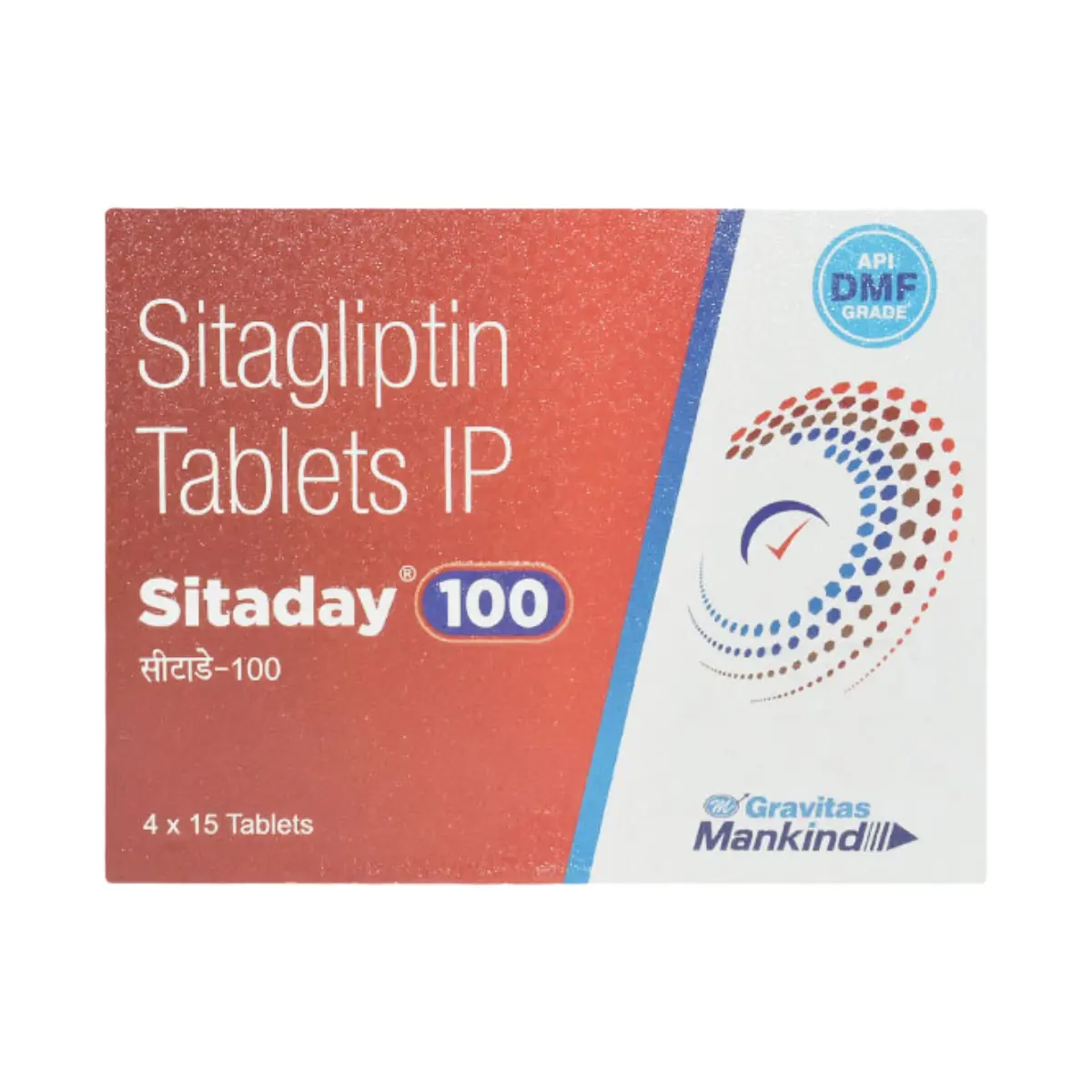 Sitaday 100 Tablet is indicated for the management of type 2 diabetes mellitus. It is intended to be used alongside a balanced diet and regular physical activity to help regulate blood sugar concentrations. Effectively managing blood sugar levels is essential in reducing the risk of severe complications associated with diabetes, including nephropathy and vision loss. This medication is typically prescribed when lifestyle changes alone, or other antidiabetic medications, have not adequately controlled blood glucose levels. It can be administered either as a standalone treatment or in conjunction with other diabetes medications. The timing of administration is flexible, as it may be taken either on an empty stomach or with food, depending on the patient’s preferences and doctor’s instructions. The dosage is individualized based on the patient’s specific health condition and glucose monitoring results; hence, adherence to the prescribed regimen is crucial. Consistent daily intake at the same time enhances its effectiveness, and discontinuation should only occur under medical advice. In addition to medication, adherence to recommended dietary and exercise guidelines is vital for optimal management of diabetes, as lifestyle choices significantly influence blood sugar control. Use this medicine only under medical supervision. Follow the dose and schedule exactly as advised. Do not stop abruptly without guidance. Keep a record of any unusual symptoms and share them with your clinician. Combine therapy with appropriate lifestyle measures and routine monitoring as recommended.
