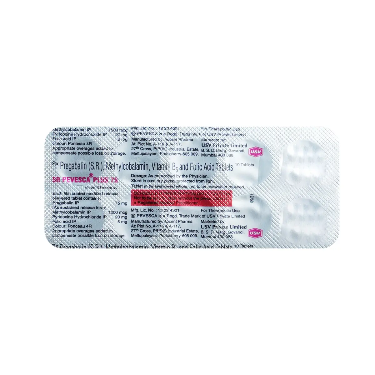 The active ingredients in SR PEVESCA PLUS 75 work together to promote nerve health. Pregabalin is known for its role in modulating the release of certain neurotransmitters, which can help in reducing nerve pain signals. Methylcobalamin, Vitamin B6, and Folic Acid are essential nutrients that contribute to nerve repair and regeneration, supporting the body’s natural healing processes.