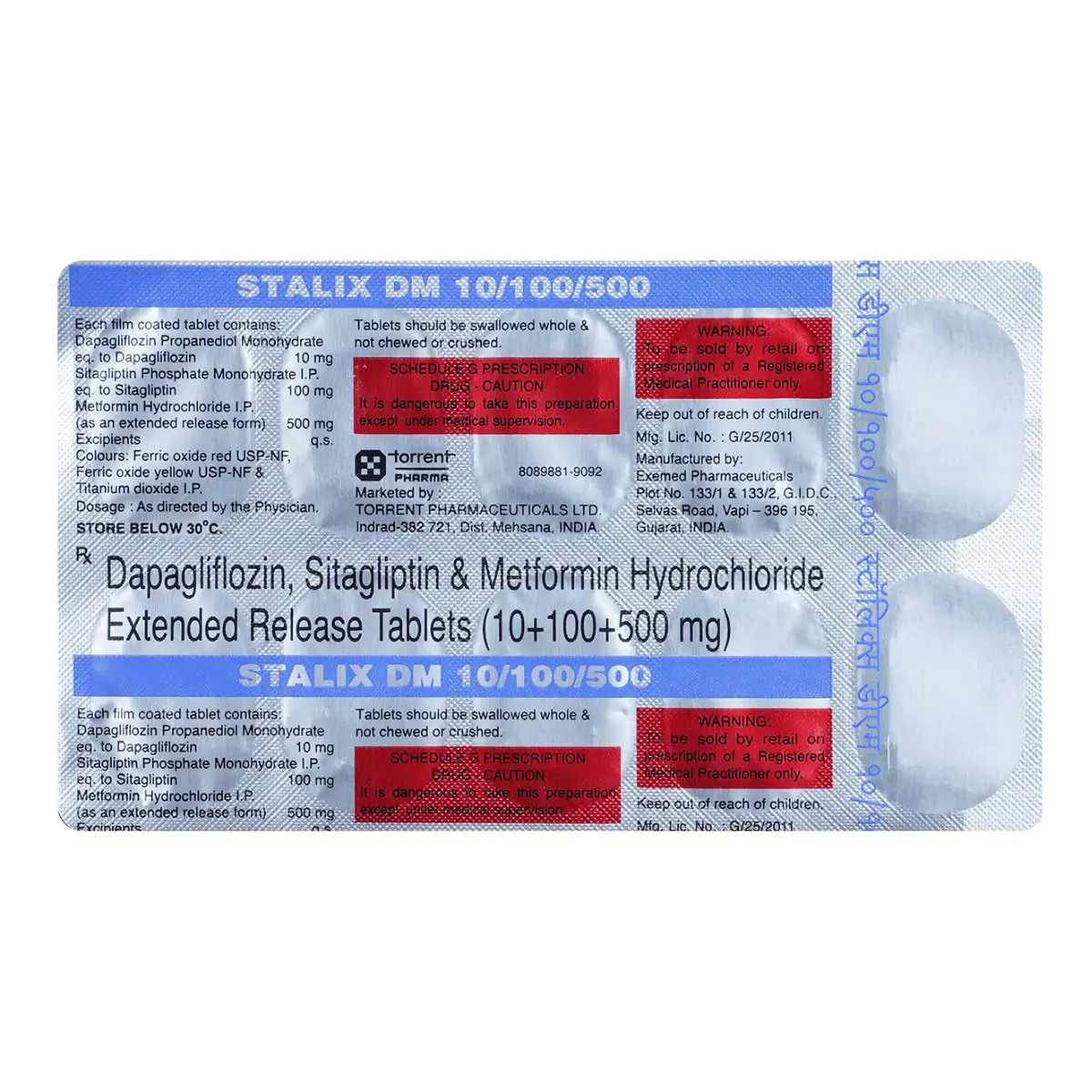 Sitaxa DM 10mg/1000mg/100mg Tablet ER is a medication designed to assist in regulating blood glucose levels in adults diagnosed with type 2 diabetes mellitus. It is intended to be used in conjunction with a balanced diet and regular physical activity to enhance overall blood sugar management. This medication plays a role in optimizing insulin effectiveness, thereby contributing to lower blood glucose concentrations. Patients are advised that this tablet can be consumed at any point in the day, regardless of meal timing; however, consistency in timing is recommended for best results. The prescribing physician will determine the appropriate dosage, and it is important not to discontinue use without consulting them, as doing so could lead to elevated blood sugar levels and potential severe complications, such as kidney impairment or vision loss. It is also crucial to recognize that this medication is an integral component of a comprehensive treatment strategy that should be complemented by lifestyle modifications, including adherence to a nutritious diet, engaging in physical exercise, and maintaining a healthy weight as per medical guidance. Staying hydrated while using this medication is advisable to mitigate the risk of dehydration. Good personal hygiene practices may also help prevent possible fungal infections that can occur in sensitive areas.