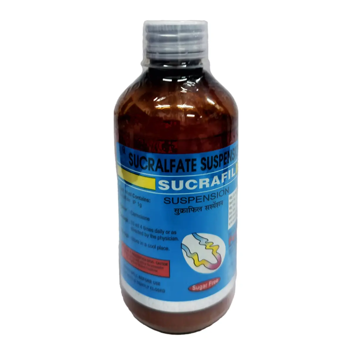 Sucrafil Susp is a medication commonly used to help manage conditions related to the stomach and digestive tract, such as ulcers and gastritis. It works by forming a protective barrier over the lining of the stomach and intestines, which can support healing and reduce discomfort. This protective action may also help shield these areas from irritation caused by stomach acids and other digestive fluids.