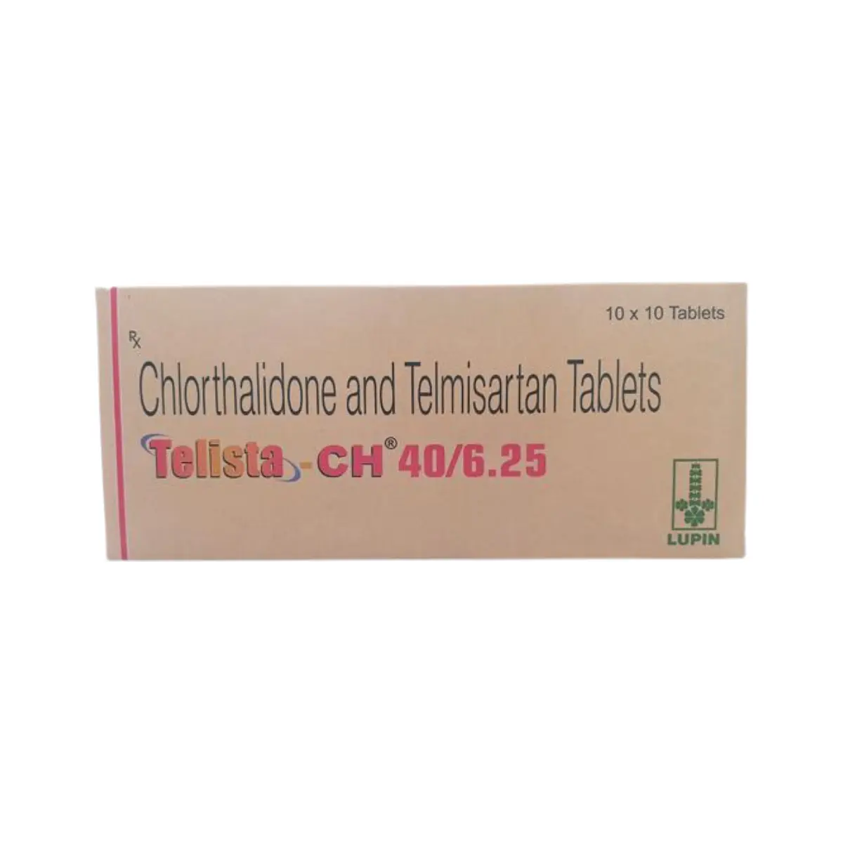 Telista-CH 40/6.25 Tablet is a combination medication designed to manage hypertension. It contains two active ingredients that work together to lower blood pressure effectively. By controlling blood pressure levels, this medication helps mitigate the risk of serious cardiovascular events, such as heart attacks and strokes. You may take Telista-CH 40/6.25 Tablet with or without meals, and the specific dosage will be determined based on your individual health condition and response to the treatment. Consistency is key, so it is advisable to take the medication at the same time every day. It is crucial to adhere to the prescribed treatment regimen unless advised otherwise by your healthcare provider. This medication includes a diuretic component, which may lead to increased urination; therefore, it is recommended to avoid taking it within four hours prior to bedtime to minimize nighttime bathroom visits. Regular use of Telista-CH is essential to achieve optimal results, even if you feel better, as high blood pressure often goes unnoticed without symptoms. Discontinuing the medicine could elevate your risk of heart-related issues. Dizziness is the most frequently reported side effect, while others may include nausea, diarrhea, headaches, and changes in lipid levels. Frequent urination is a normal effect of the diuretic component and is not classified as a side effect. Although there may be other less common side effects, it’s important to consult your healthcare provider if you have concerns or if they persist, as an adjustment in dosage or a different treatment may be necessary. It is advised to discuss your medical history with your doctor, particularly if you have kidney or liver conditions, diabetes, or heart issues, before starting this medication. Additionally, alcohol consumption while on this medication can exacerbate blood pressure lowering effects and lead to increased side effects.
