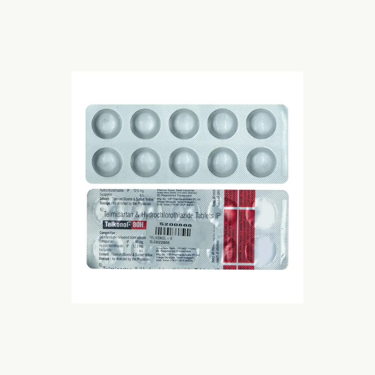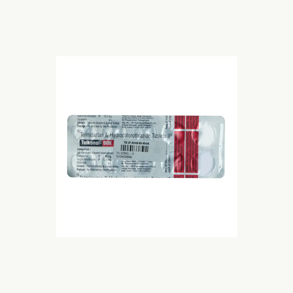 Telkonol 80H Tablet is formulated with two active ingredients that work together to help manage elevated blood pressure. This medication is particularly beneficial for individuals who find that a single antihypertensive treatment is insufficient for controlling their blood pressure levels. Maintaining blood pressure within a normal range is crucial as it significantly lowers the chances of cardiovascular events such as heart attacks or strokes in the future. Patients can take Telkonol 80H with or without meals, and the dosage may vary based on individual health conditions and overall response to treatment. It is advisable to take the tablet at a consistent time every day to promote adherence to the treatment regimen. It is essential to continue using this medication as prescribed by your healthcare provider, even if you begin to feel better, as hypertension often presents without noticeable symptoms. Discontinuing the medication may increase the risk of serious health complications. The diuretic component of this medication may lead to increased urination, so it’s recommended to avoid taking the tablet within four hours before bedtime to minimize disruptions during the night. While some side effects may occur, they are often mild and manageable; patients are encouraged to review the accompanying information leaflet thoroughly and discuss any persisting or concerning effects with their physician. In addition, it’s important not to use potassium supplements or salt substitutes unless directed by your doctor. This medication is generally not advised for use during pregnancy or lactation, and individuals with kidney or liver conditions, heart issues, or diabetes should seek medical advice before starting treatment. Alcohol consumption may exacerbate blood pressure lowering effects and could lead to additional side effects.