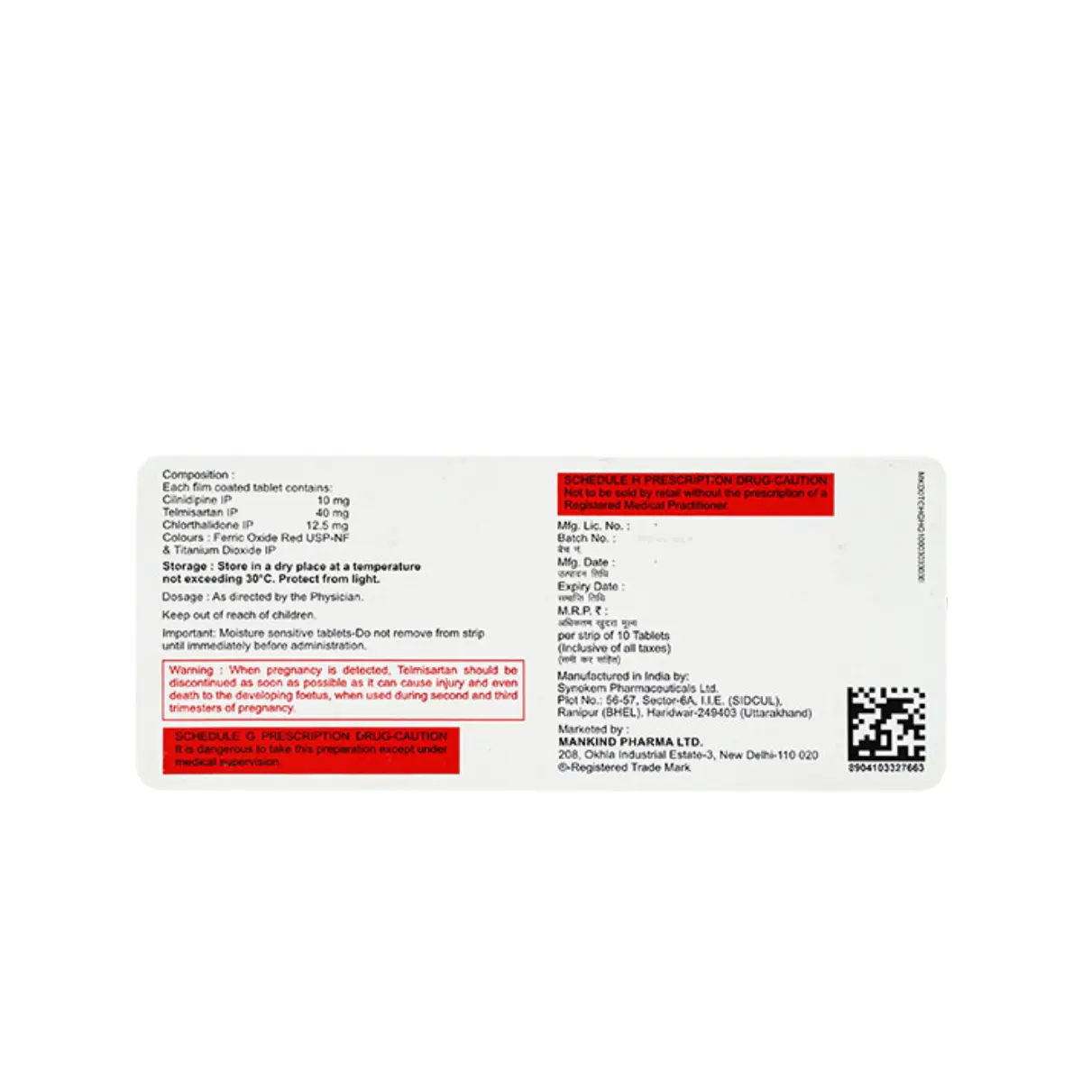 Telmikind Trio 12.5 mg Tablet is a composite medication designed to manage hypertension, particularly for individuals who do not achieve adequate results with a single drug therapy. This medication effectively reduces elevated blood pressure, thereby lessening the likelihood of serious cardiovascular events such as heart attacks and strokes. It is advisable to take Telmikind Trio with food to enhance absorption and mitigate potential gastrointestinal discomfort. The prescribed dosage will be tailored to your specific health needs and may vary based on how you respond to treatment. It is crucial to take the medication consistently at the same time daily and continue its use as directed by your healthcare provider, even if you feel well. Discontinuation without medical advice may elevate your risk of severe complications associated with high blood pressure, which often presents without noticeable symptoms. Due to the presence of a diuretic component in this formulation, patients may experience increased urination; thus, it is wise to avoid taking the medication close to bedtime to prevent sleep disruption. Staying hydrated is essential during therapy to alleviate potential issues such as muscle weakness, dry mouth, and increased thirst. Regular monitoring of blood pressure, kidney function, electrolyte levels, and blood sugar may be necessary to ensure the medication is effective and safe for your health.